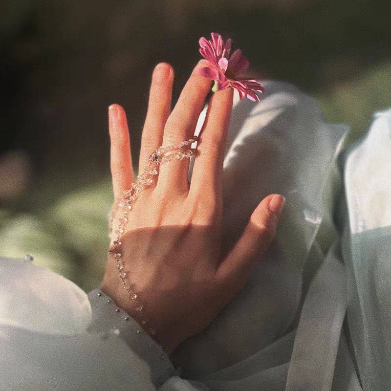 神隐赵露思阿音凤隐同款手链戒指透明琉璃珠子银色花戒指手镯礼物