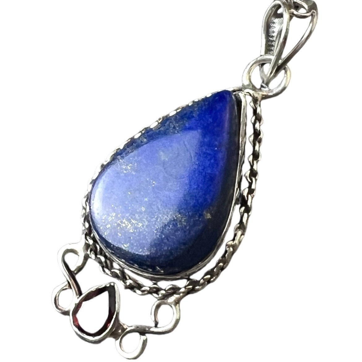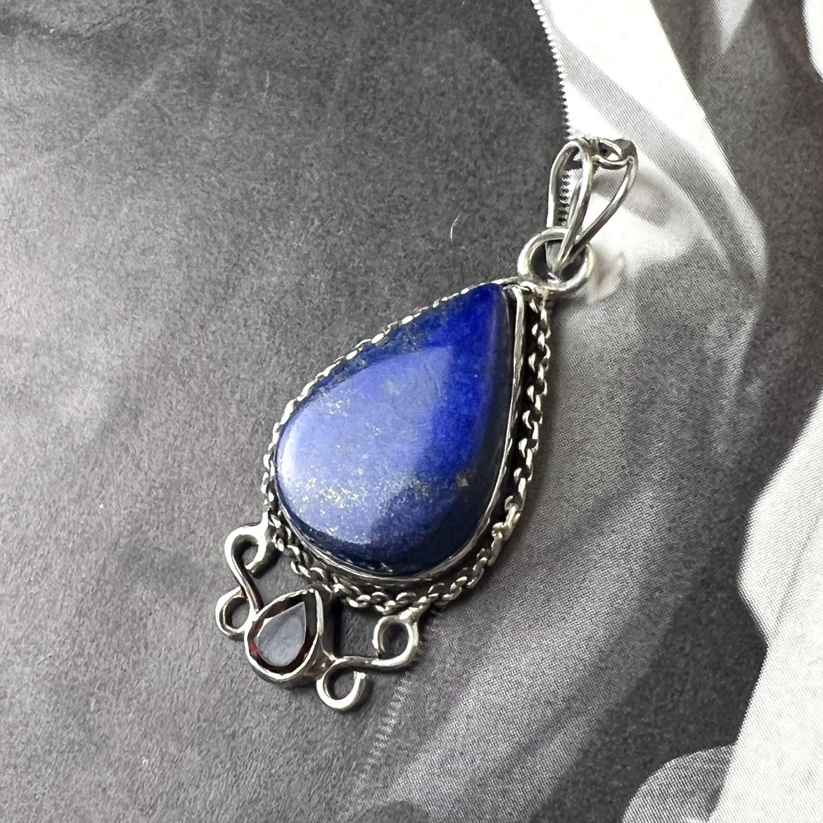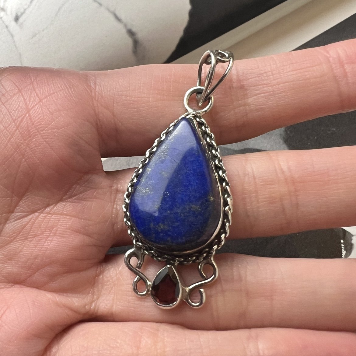 天然青金石吊坠石榴石吊坠925纯银吊坠项链vintage古董首饰中古