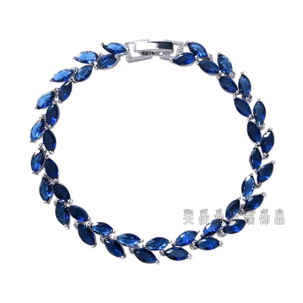 精致轻奢蓝色锆石手链水晶满钻石手饰ins小众设计高级感气质女