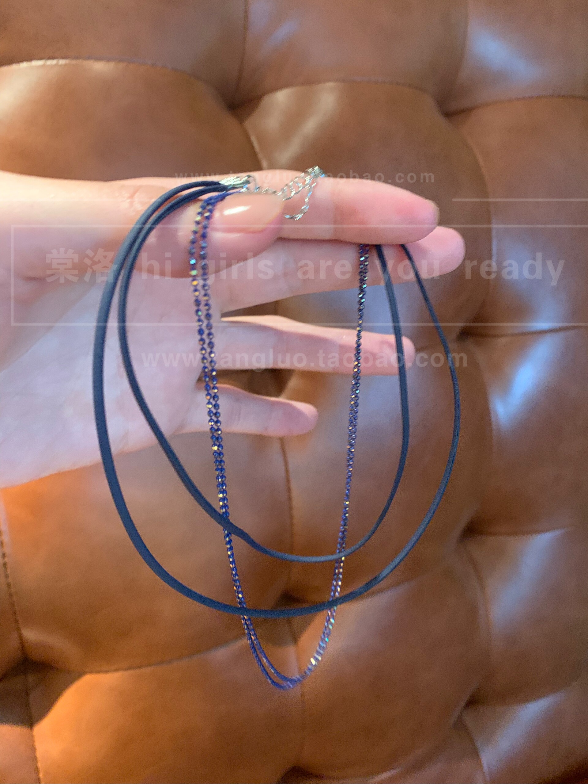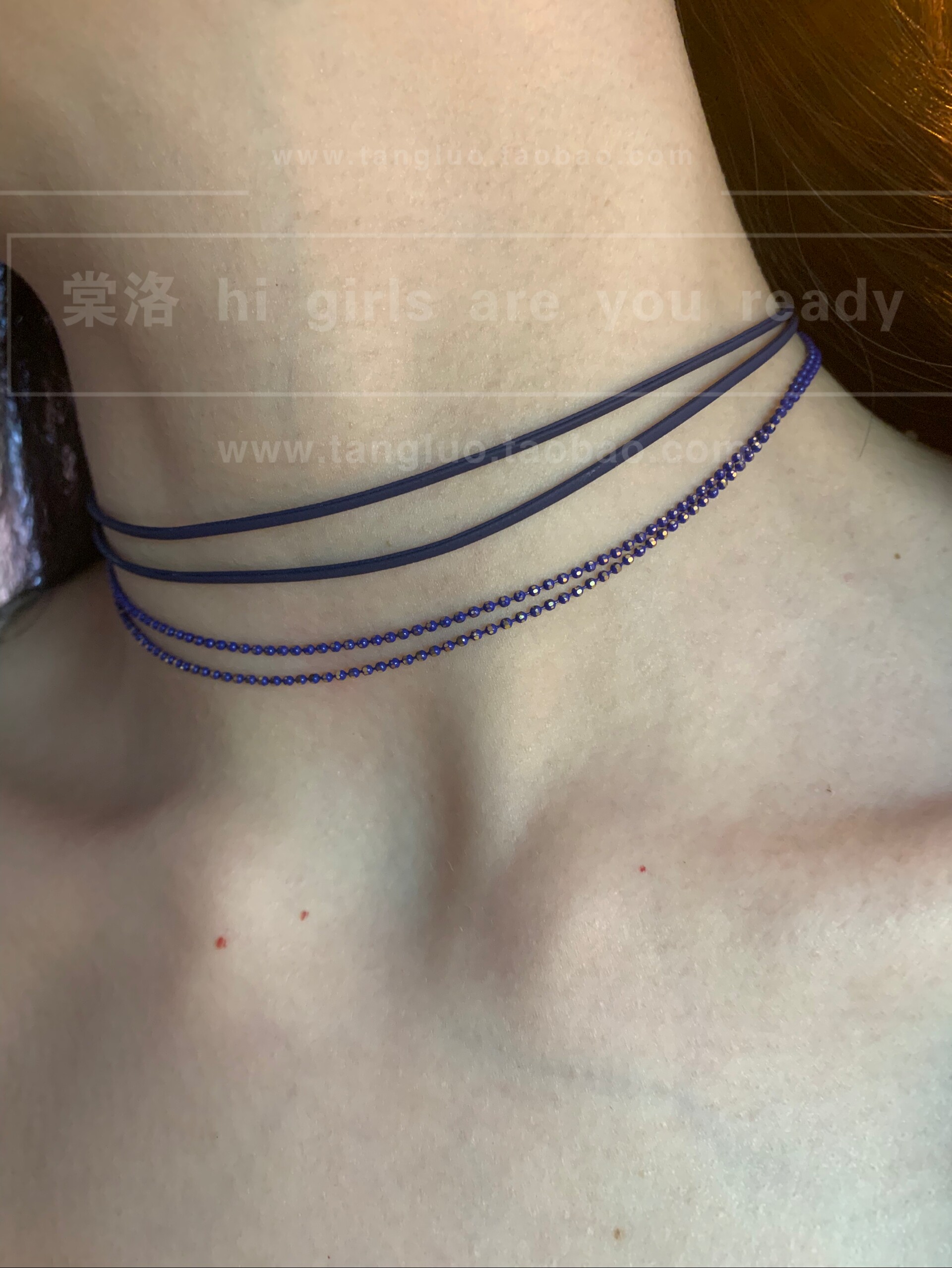 细闪蓝色多层choker颈链女显白显脖子细锁骨链氛围感叠戴颈链配饰