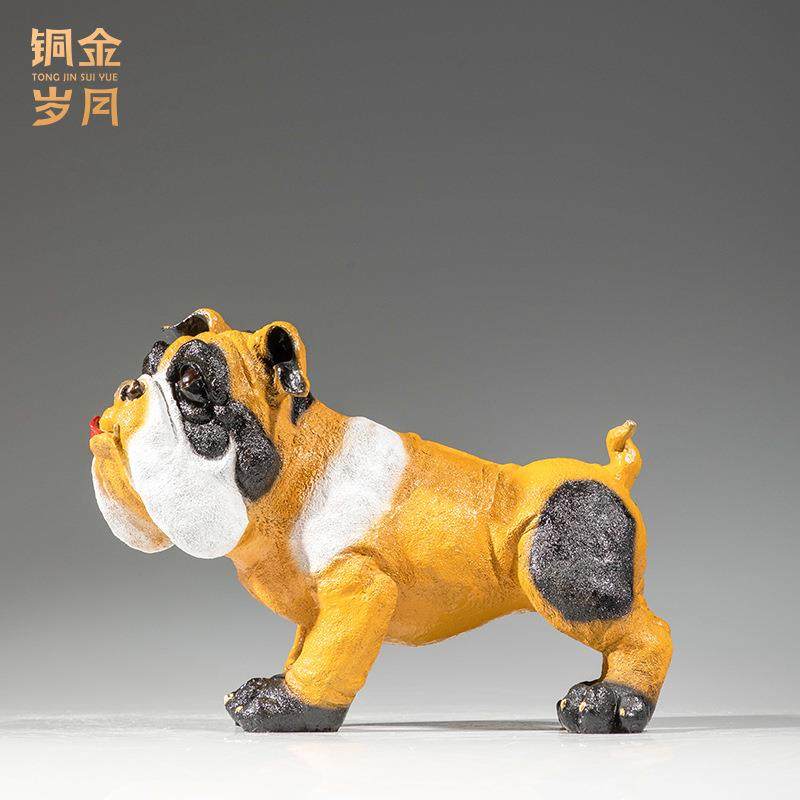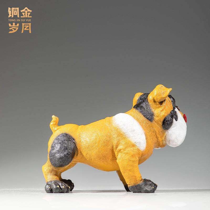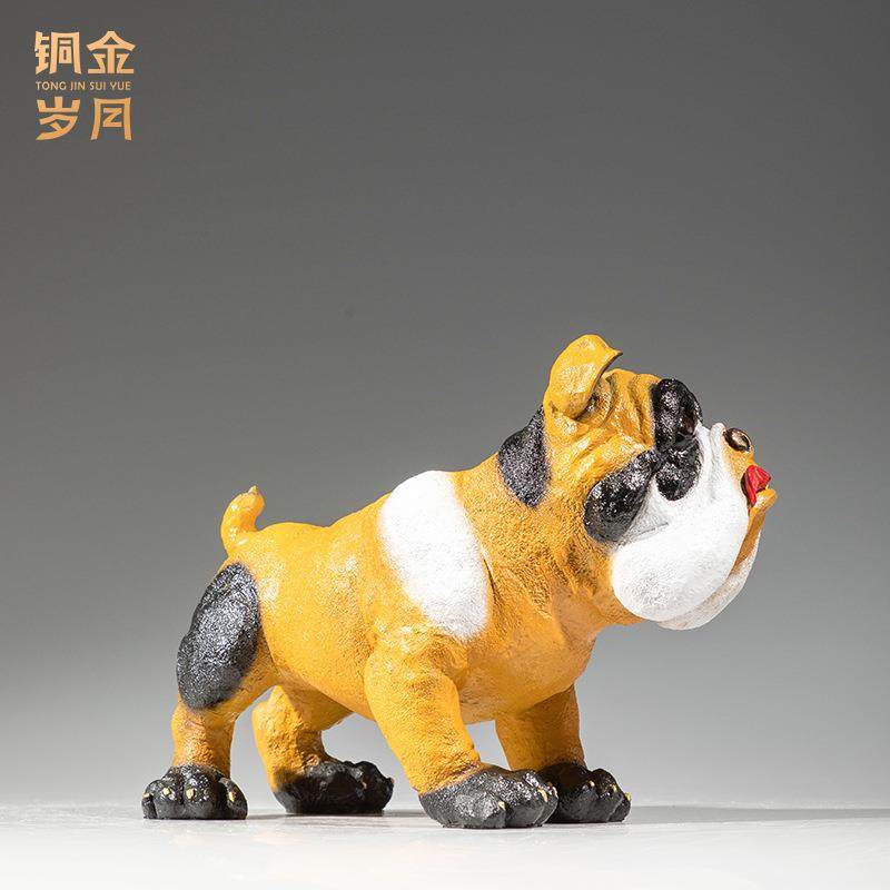铜金岁月拳师犬黄铜小黄狗摆件家居客厅办公室书房生肖狗彩铜摆件