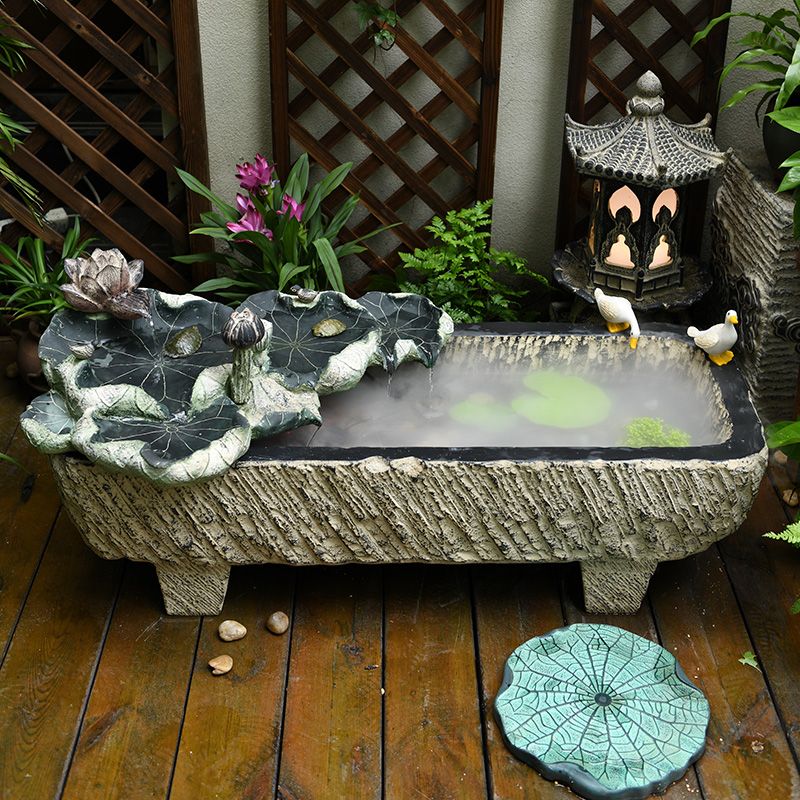 户外庭院子布置j阳台摆件水槽假山喷泉流水鱼池鱼缸室外循环水景