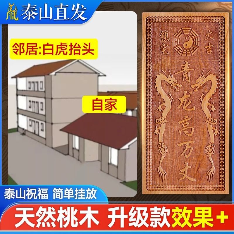 青龙高万丈桃木挂件化白虎抬头伸手邻居房子比自家高左低右高摆件