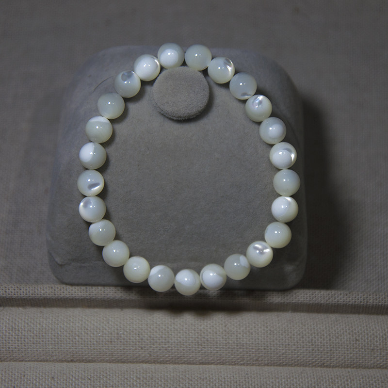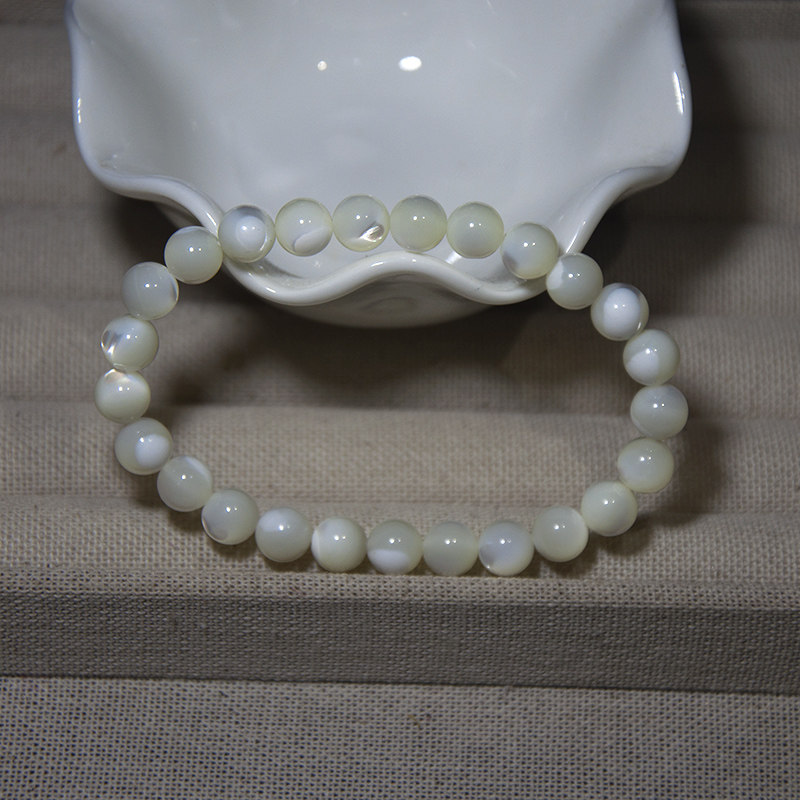 天然珍珠贝母手链女深海白蝶贝马蹄螺白色串圆珠贝壳手串叠戴手饰