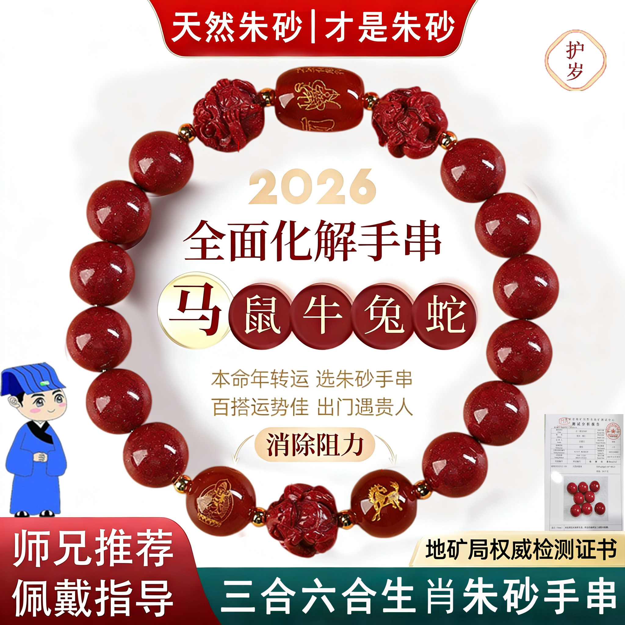 马年本命年天然朱砂手串三合六合转运珠男女士手链正品官方旗舰店