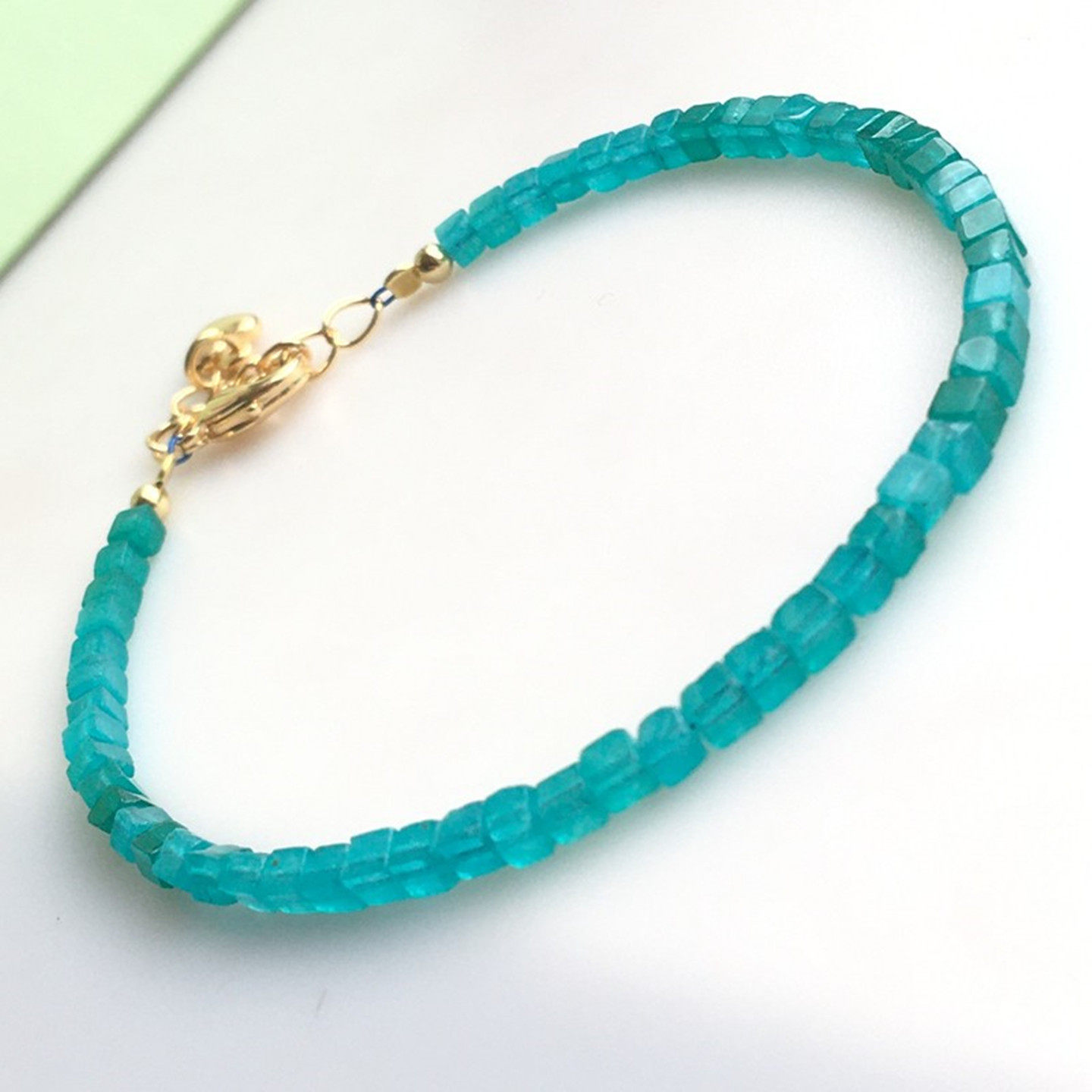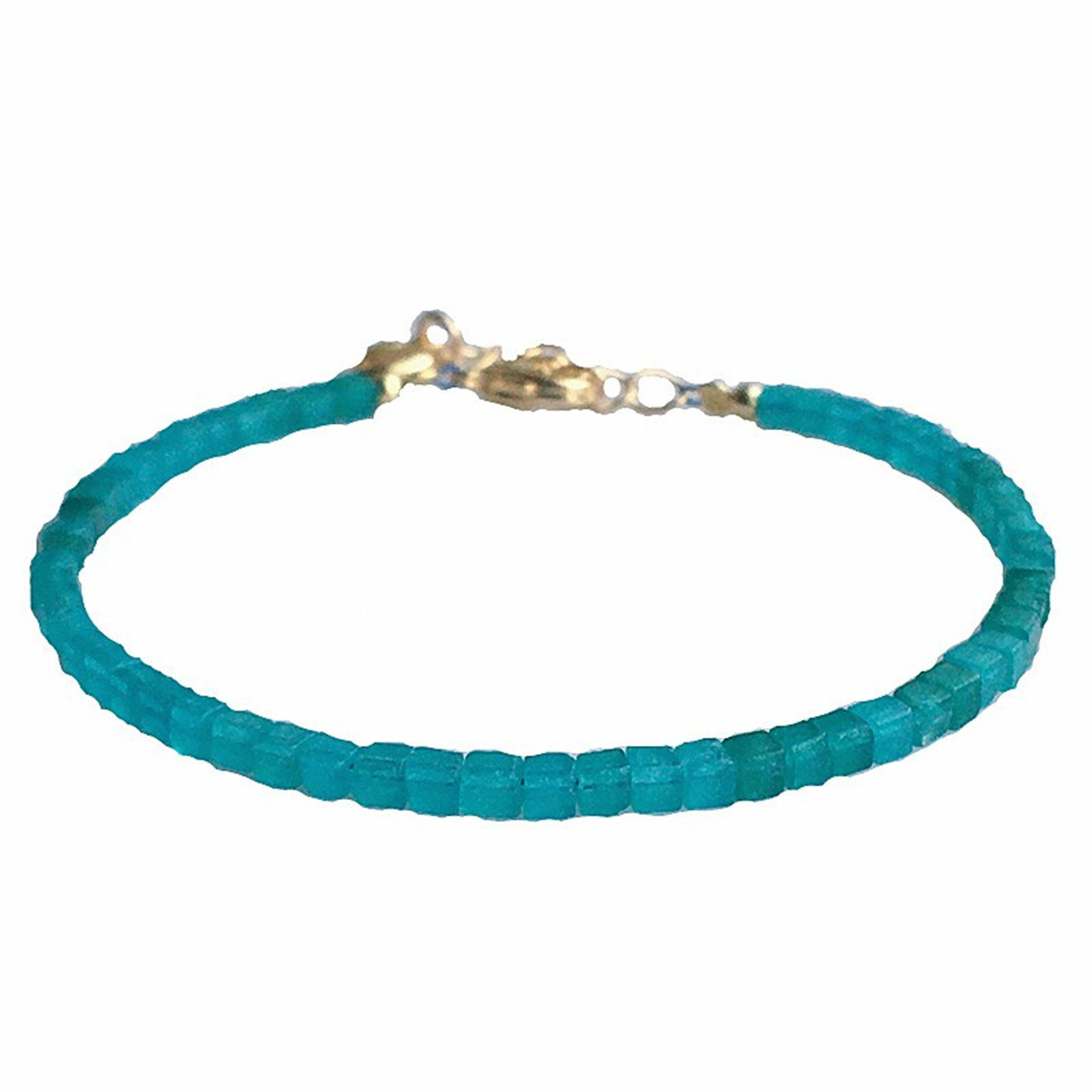 天然冰种天河石手链女款方形简约款蓝色水晶脚链迷你小珠手串礼物