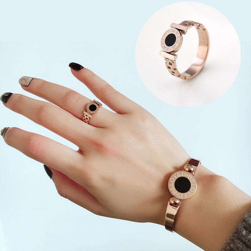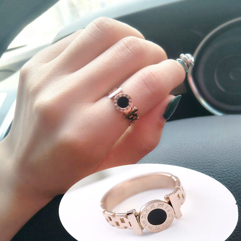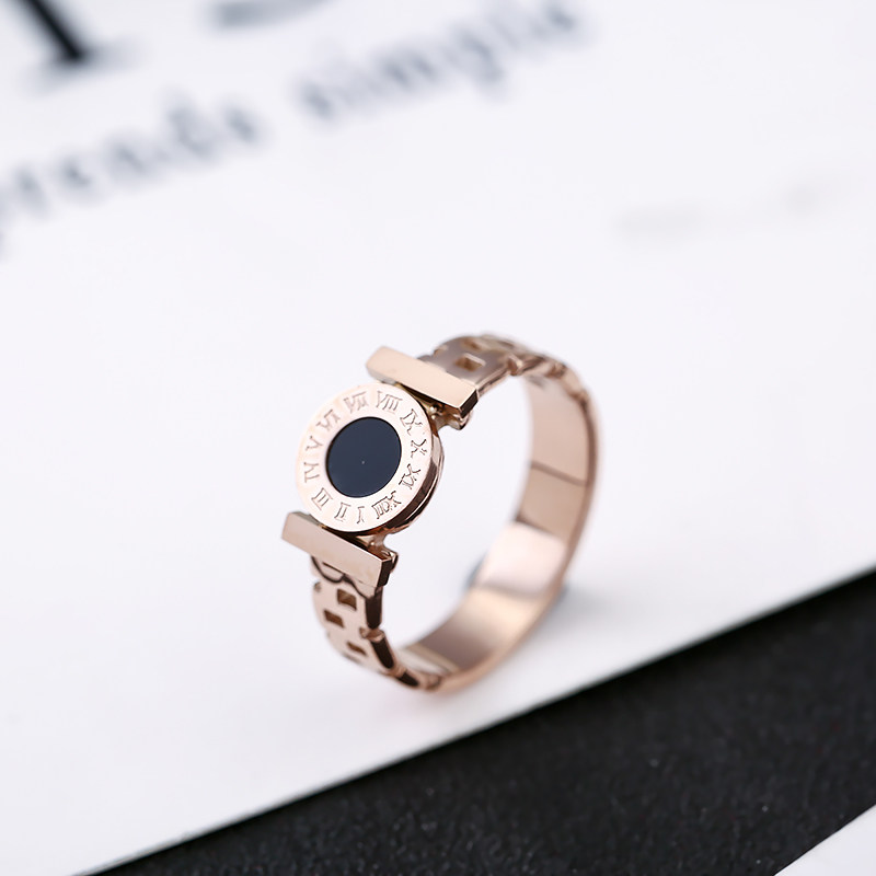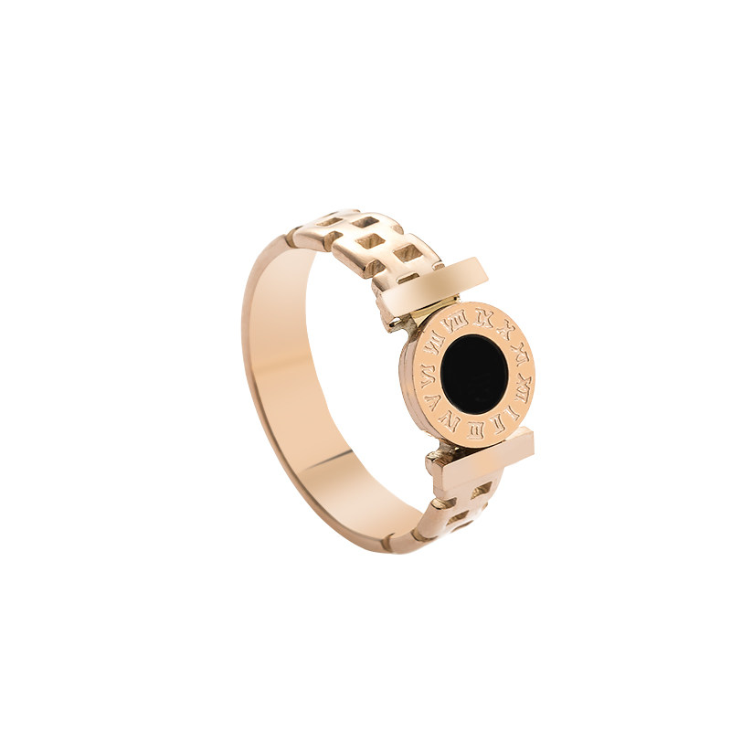 欧美时尚黑色圆牌戒指 女款个性潮人食指环精品戒子镀彩金色饰品