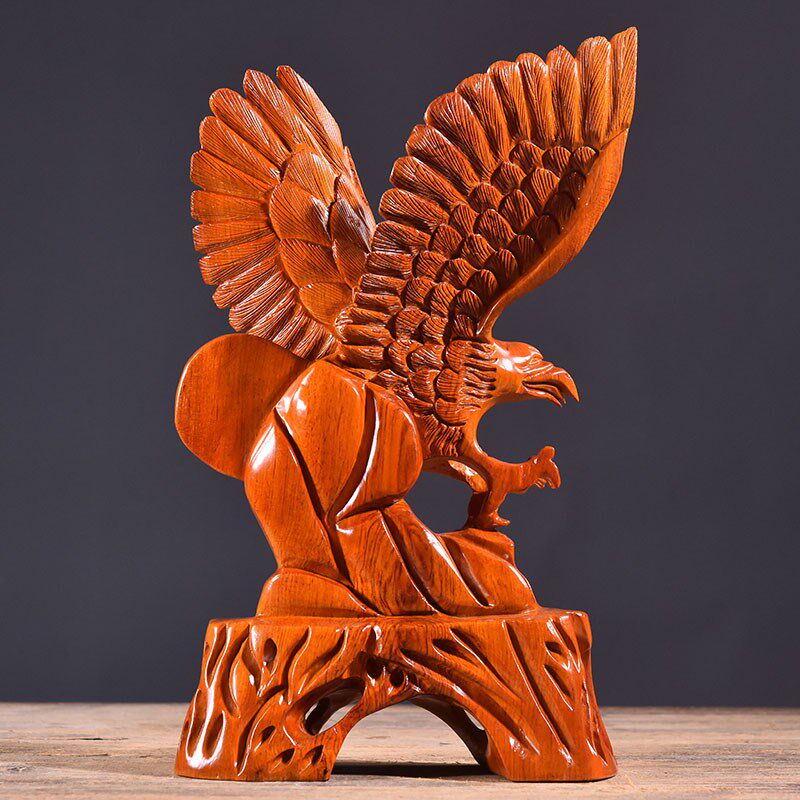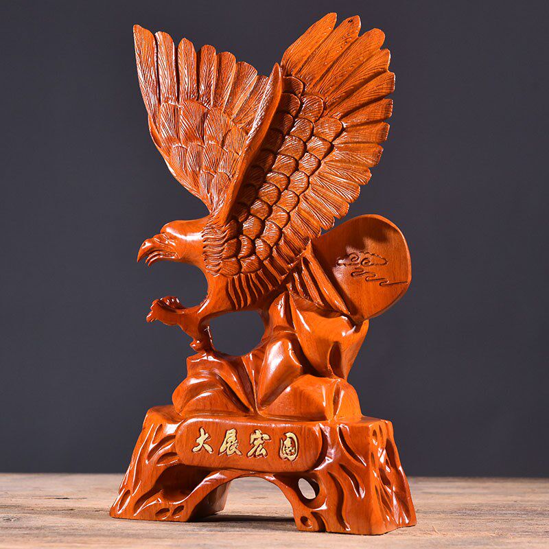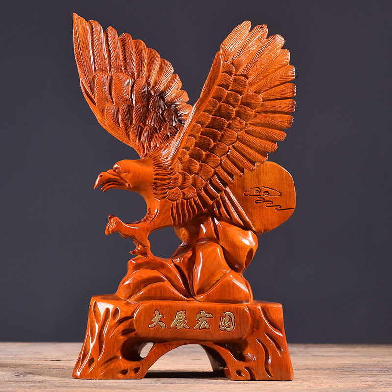 悟匠品花梨实木雕大展宏图老鹰摆件雕刻办公室客厅桌面装饰工艺品
