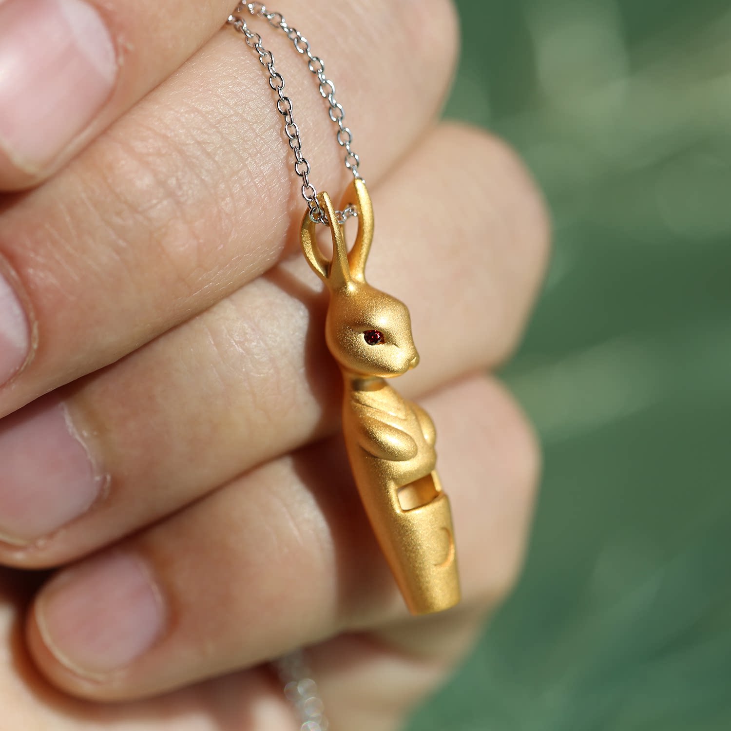 猜猜我有多爱你 925纯银月亮兔子哨子吊坠项链父女子生日中秋礼物