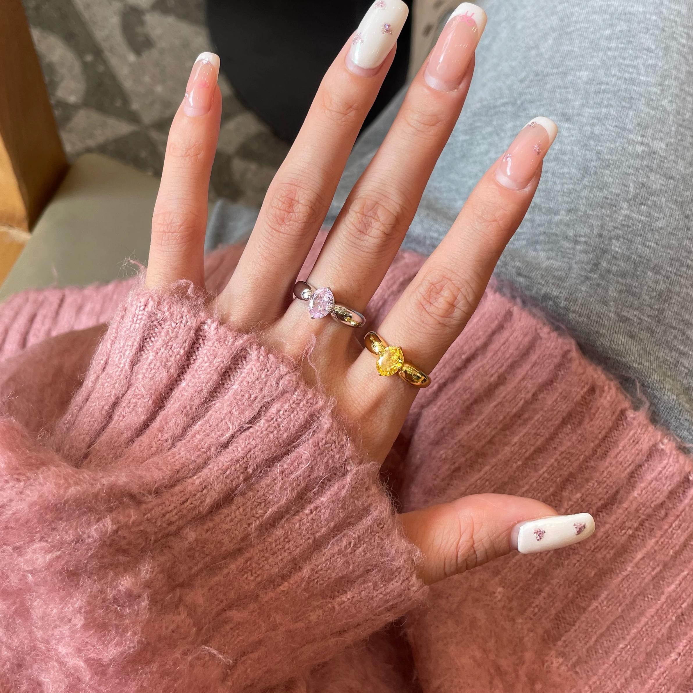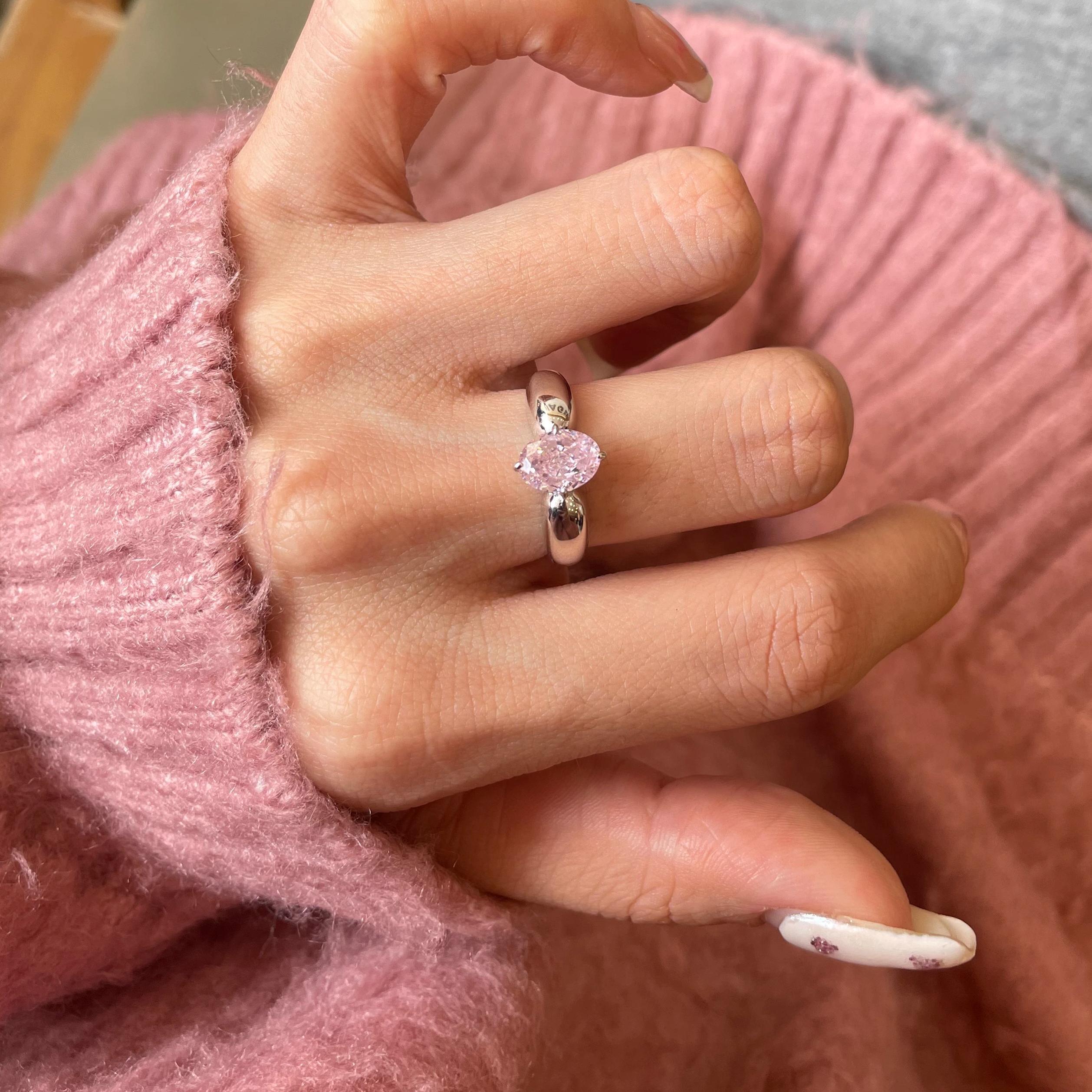 粉钻戒指椭圆形1.5克拉钻戒纯银仿真高碳钻甜美百搭高级感中古风