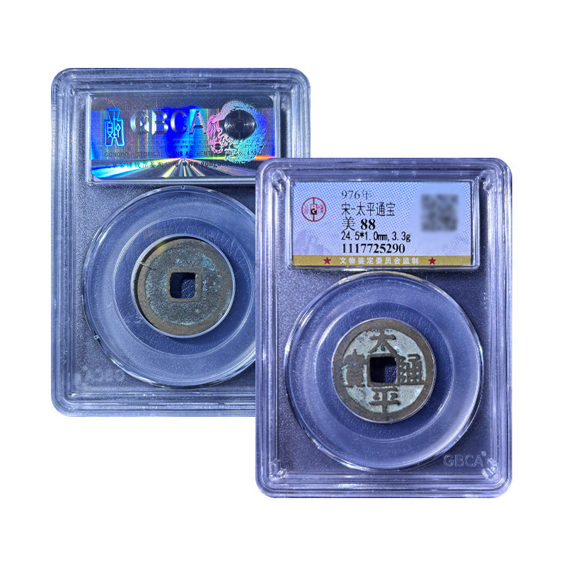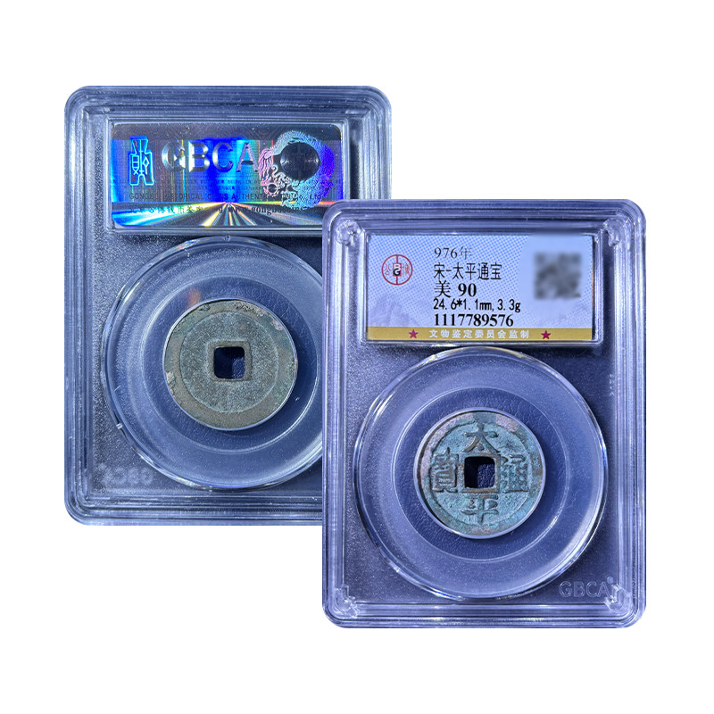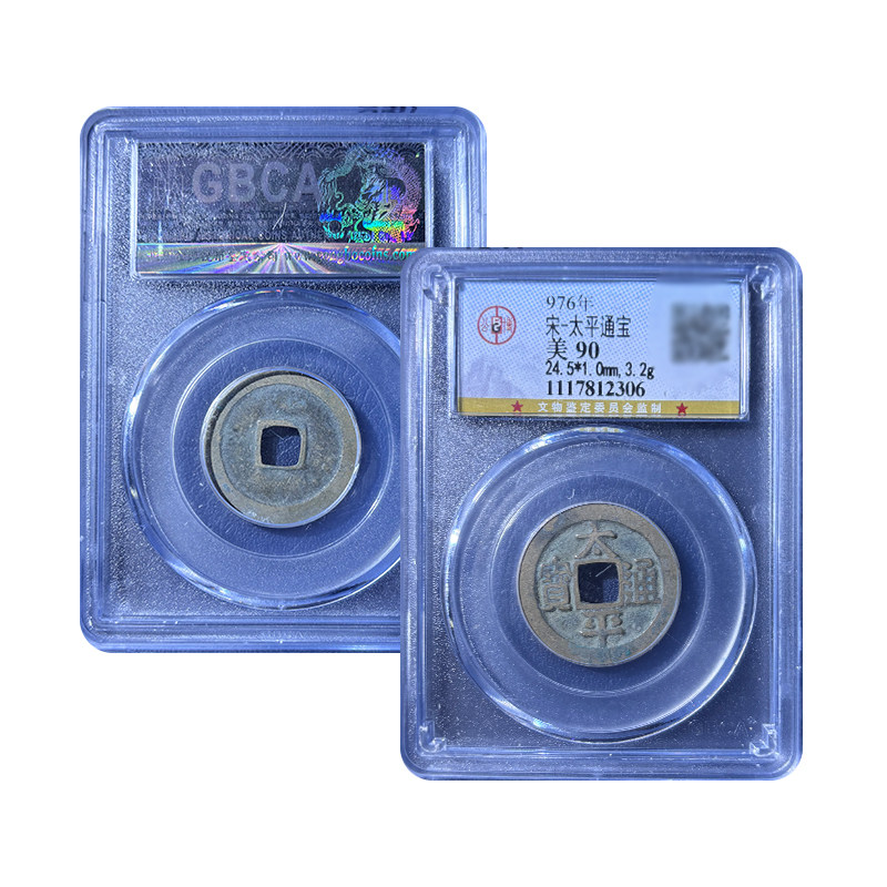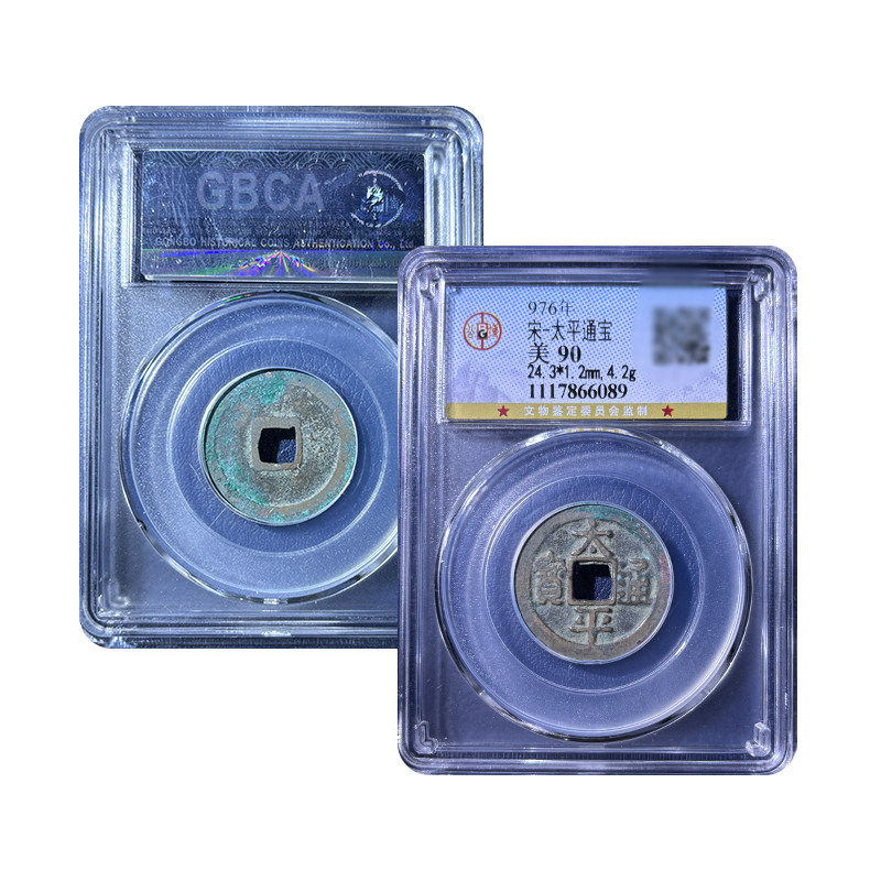 真品北宋古币太平通宝铜钱保真包老公博90分鉴定盒子币收藏评级币