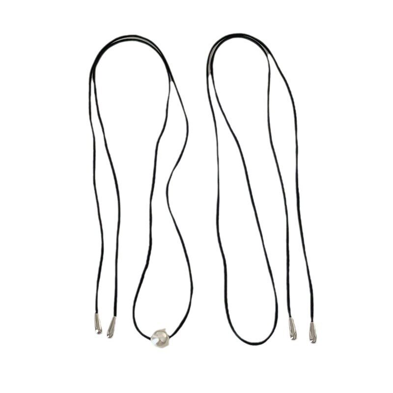 韩国小众黑色线绳珍珠吊坠长款项链女简约高级时尚百搭颈链锁骨链