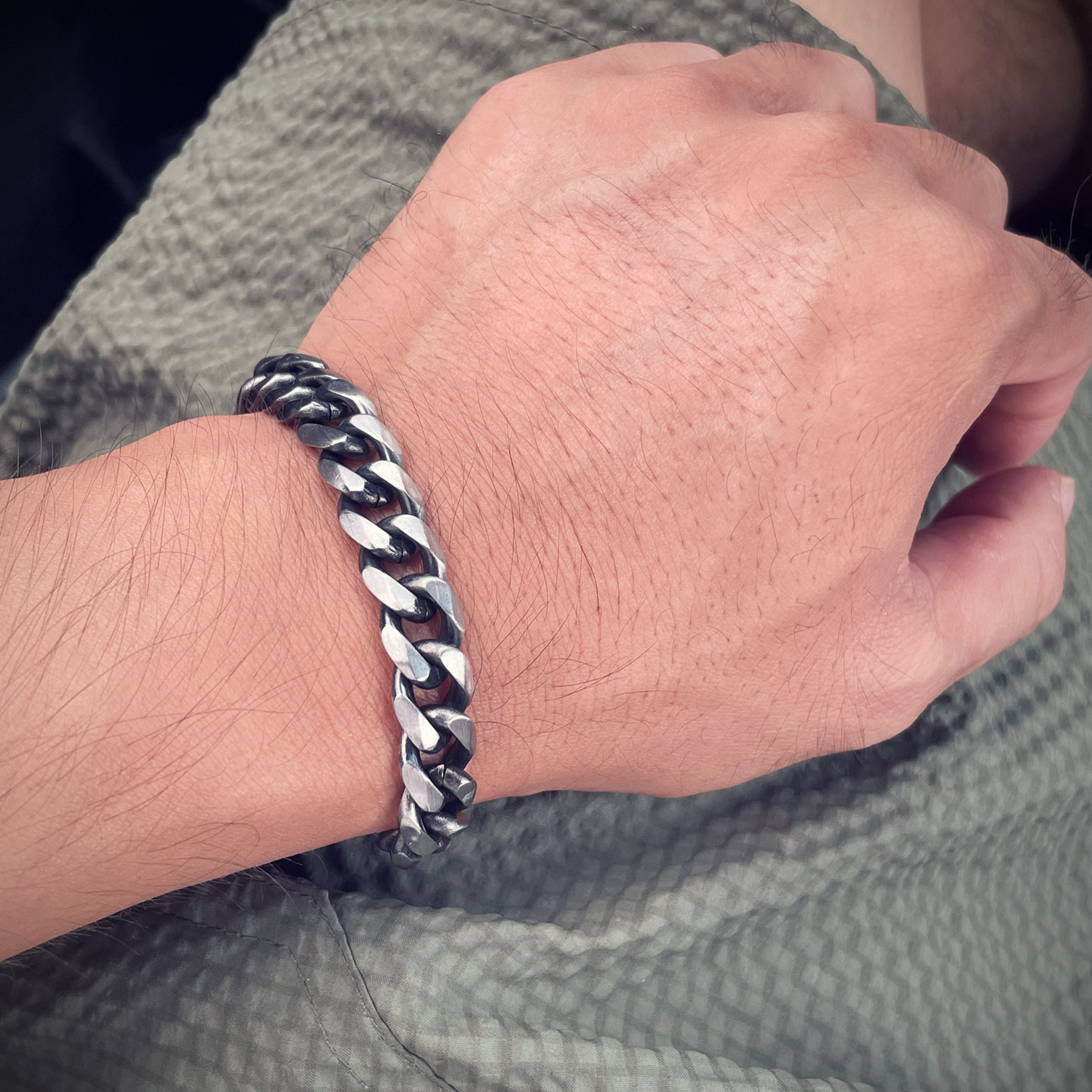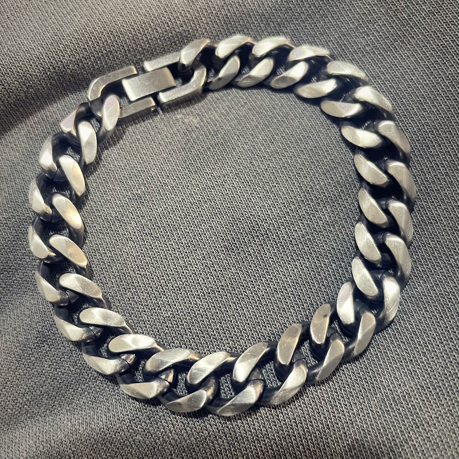 原创设计复古做旧男士嘻哈潮流钛钢手链欧美时尚个性小众黑色首饰