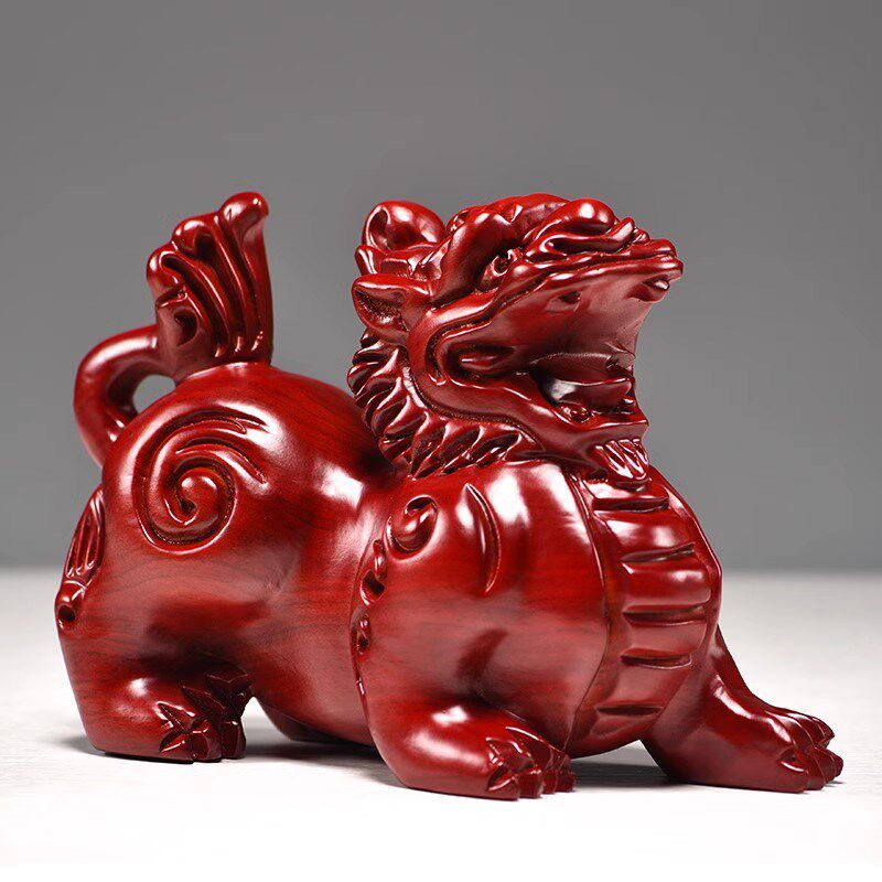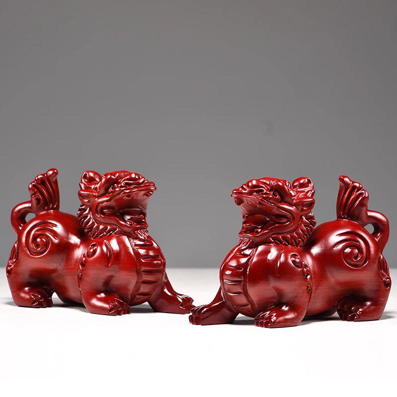 貔貅摆件一对客厅店铺家居用w办公桌红色木雕貔恘皮丘貔犰开业礼