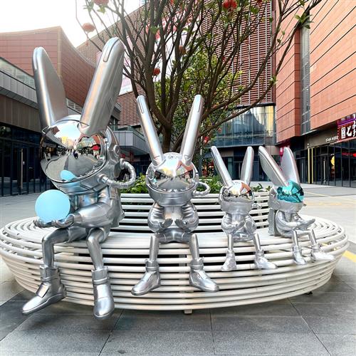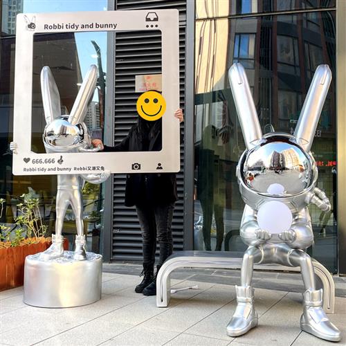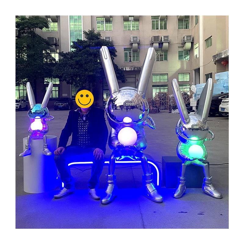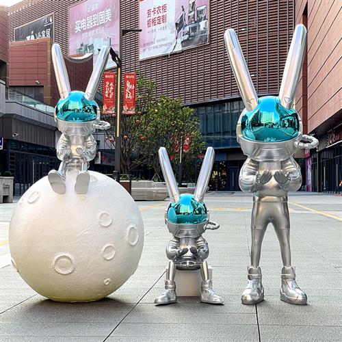 潮牌太空月光兔大摆件玻璃钢酒吧KTV门店落地装饰电镀卡通兔雕塑