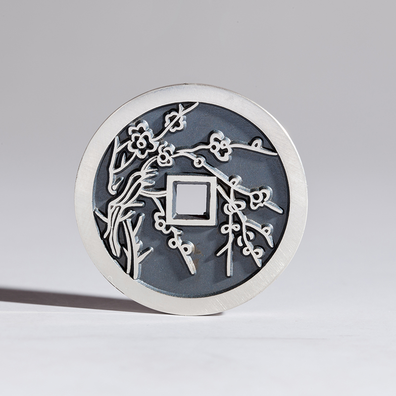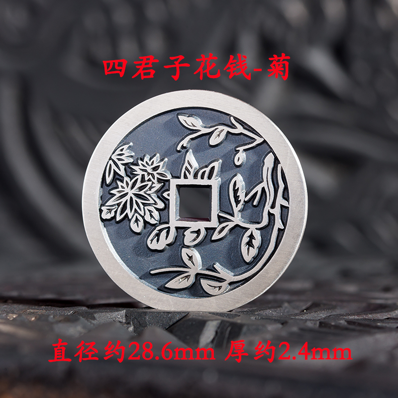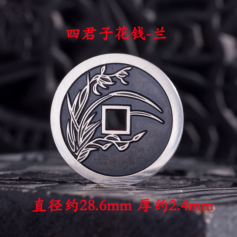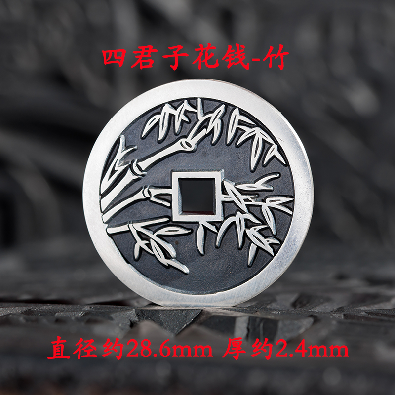 梅兰竹菊纯银吊坠挂件 清雅高洁饰品 石雀金工古法复刻四君子花钱
