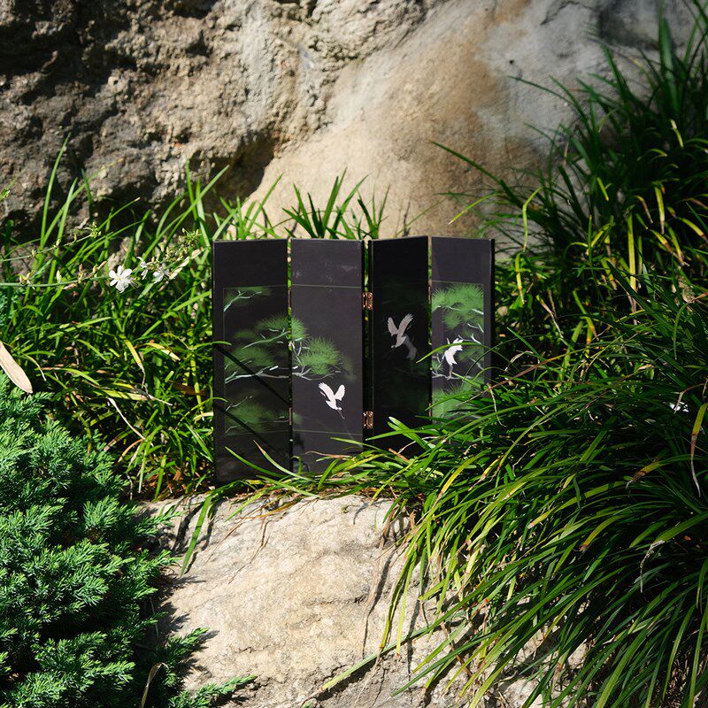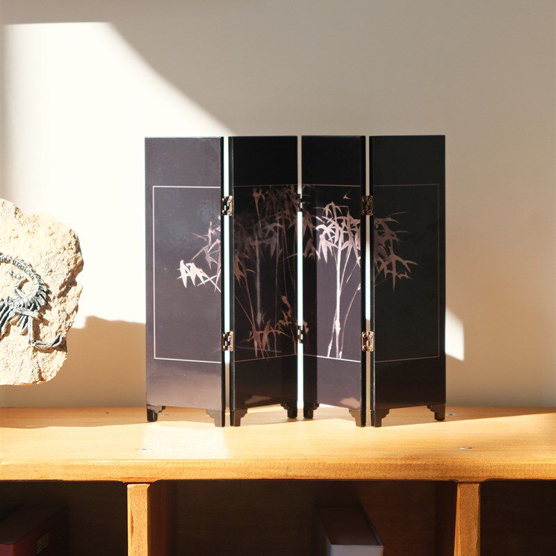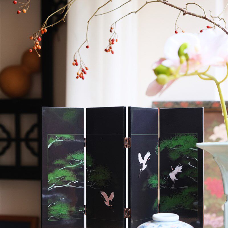 松鹤竹屏仿古漆器生日送礼复古新中式日式小屏风工艺品