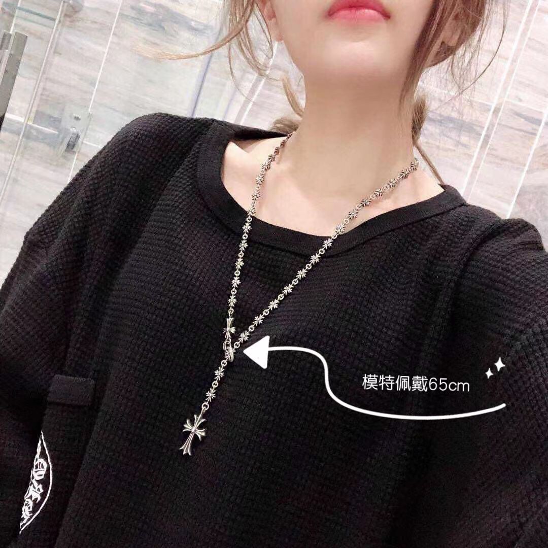 925银复古伸缩项链可调节十字架个性潮流十字花毛衣链