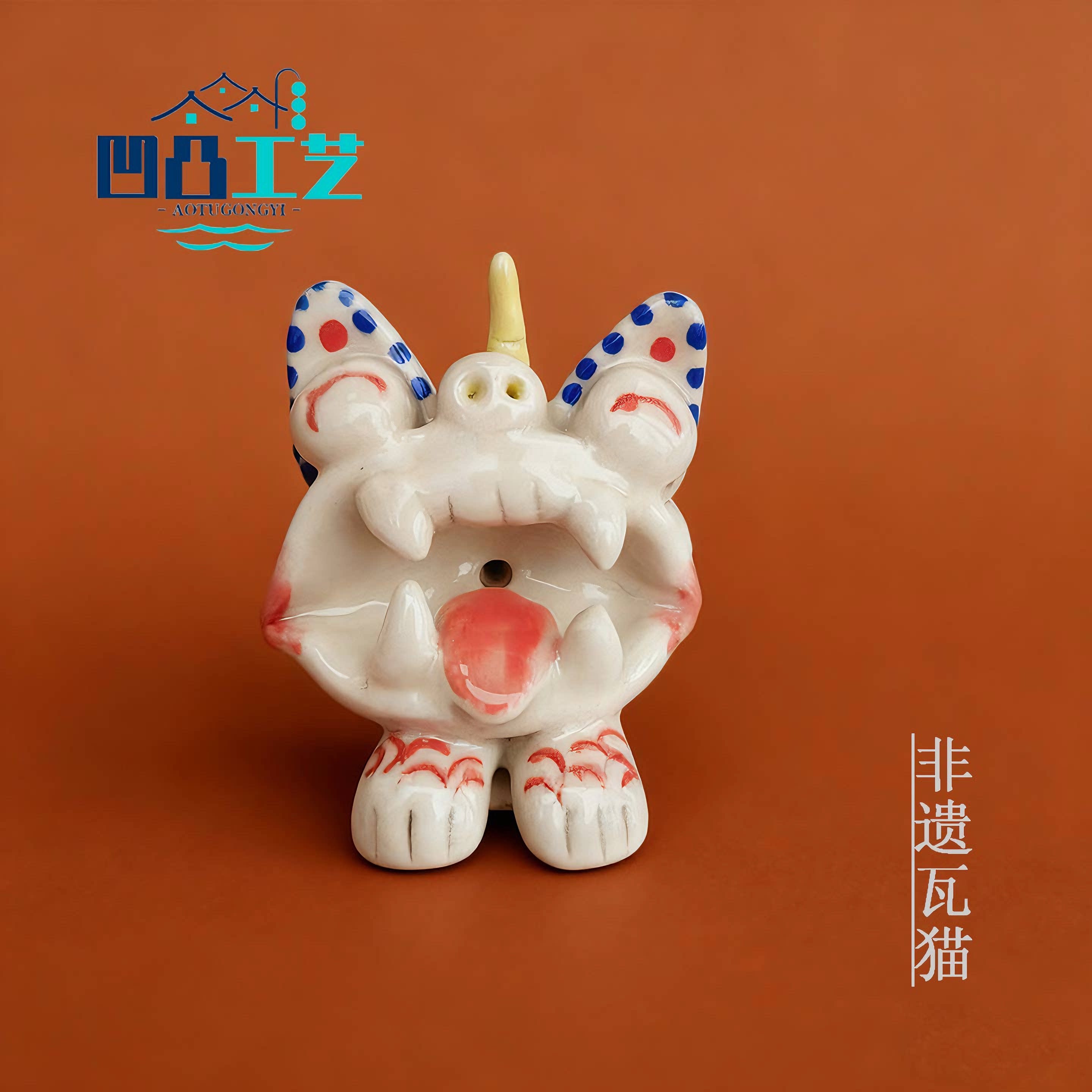 凹凸工艺云南丽江彩色瓦当猫陶瓷摆件大理非遗文创工艺送礼纪念品