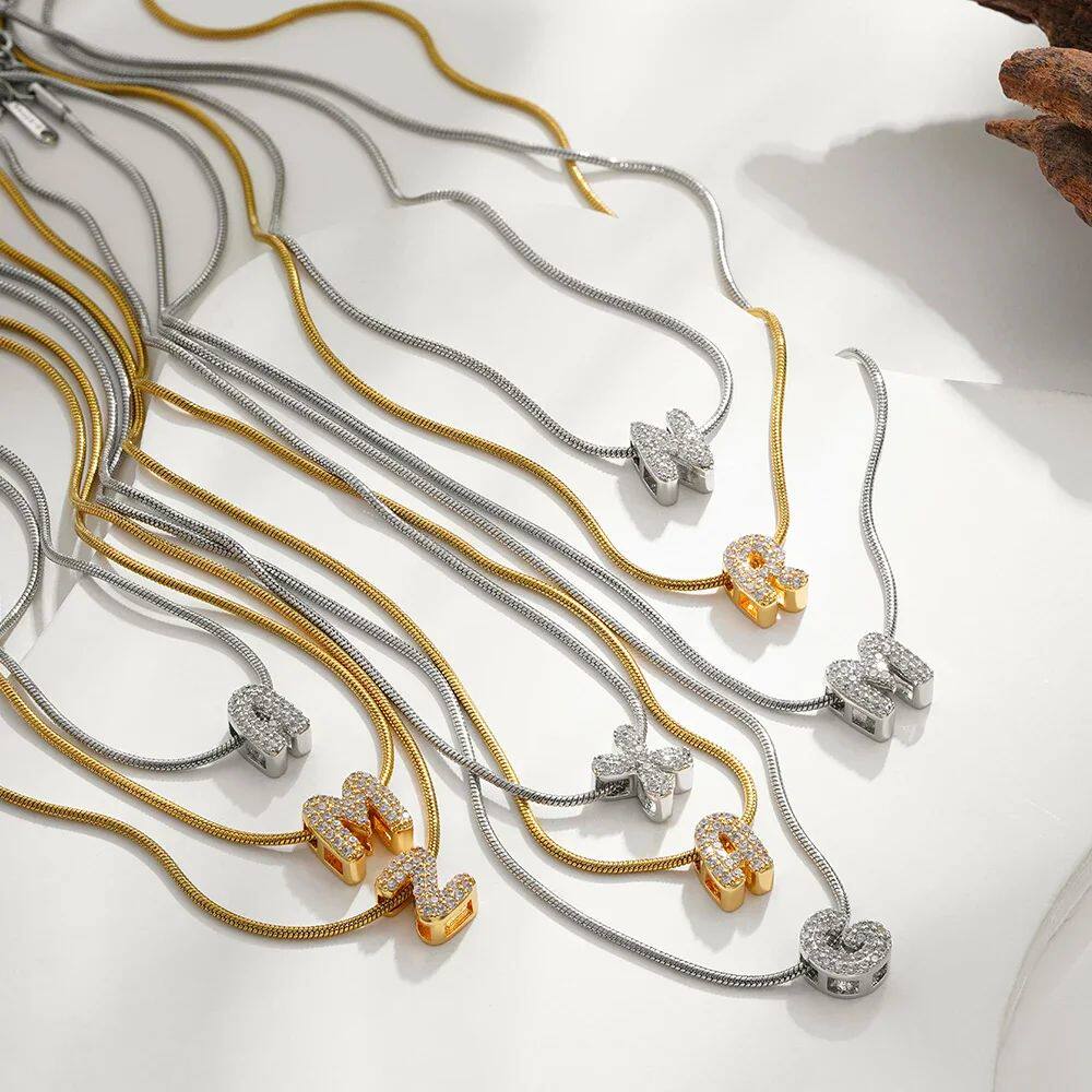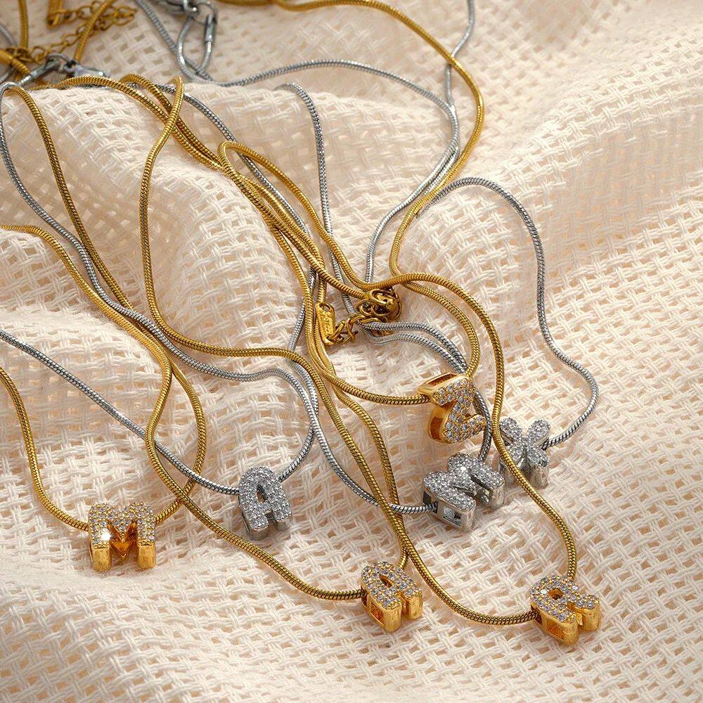 Fashion Tiny CZ Zircon Initial Alphabet Pendant Neckalce Gol