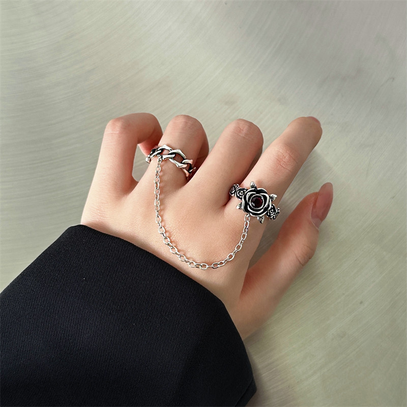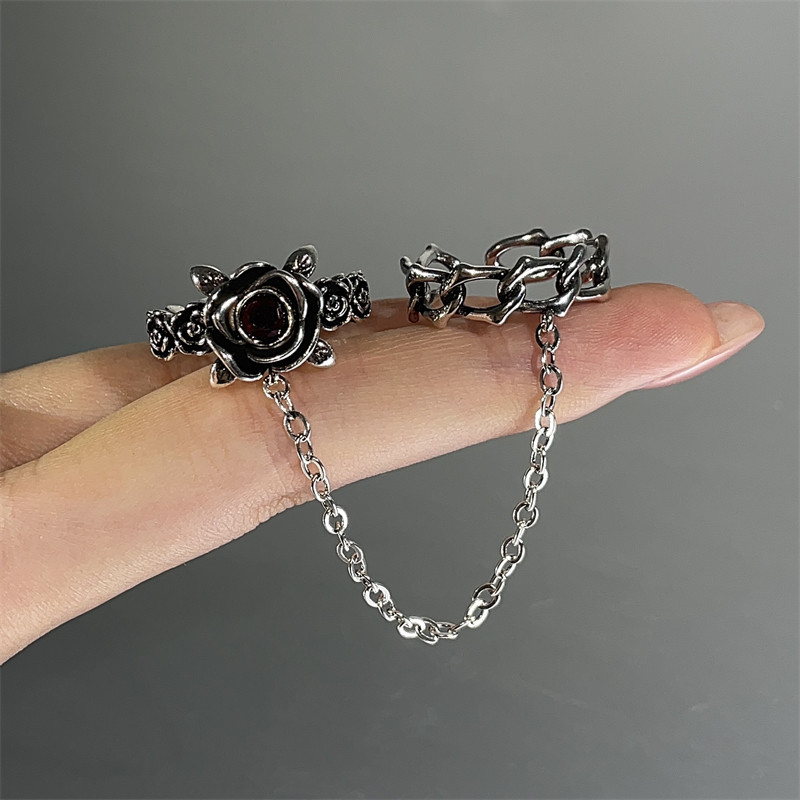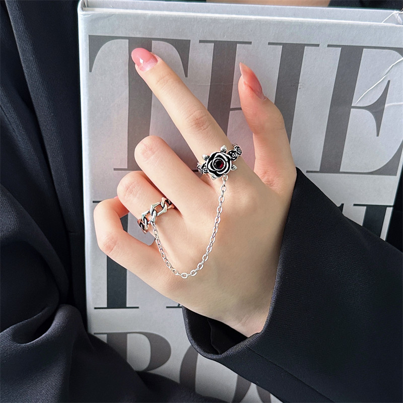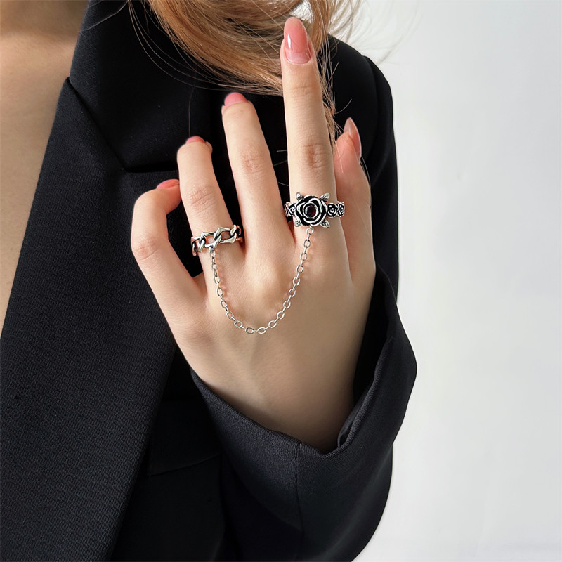 复古做旧黑色荆棘链条开口戒指女小众设计感时尚个性叠戴指环配饰