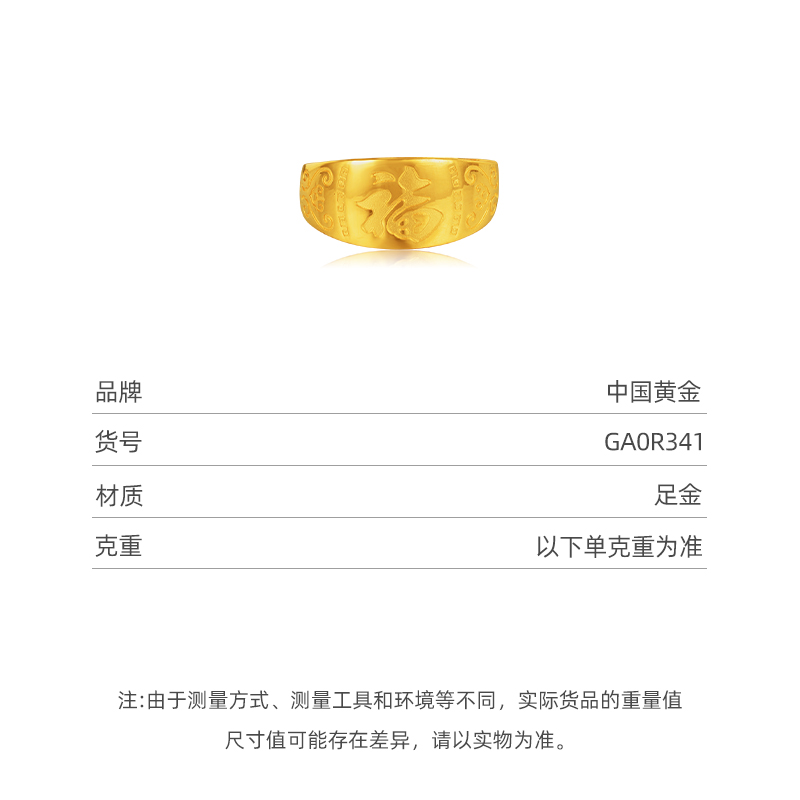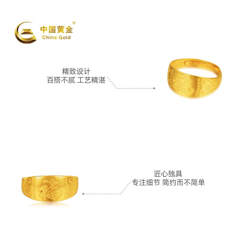 【中国黄金官方店】足金古法福字戒指时尚简约气质送父母长辈