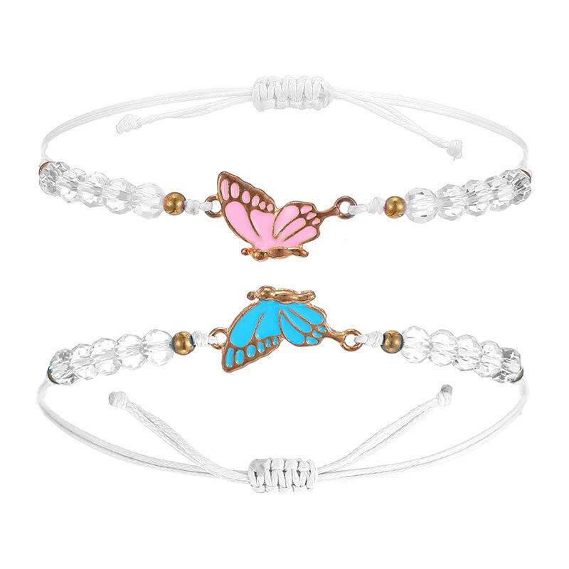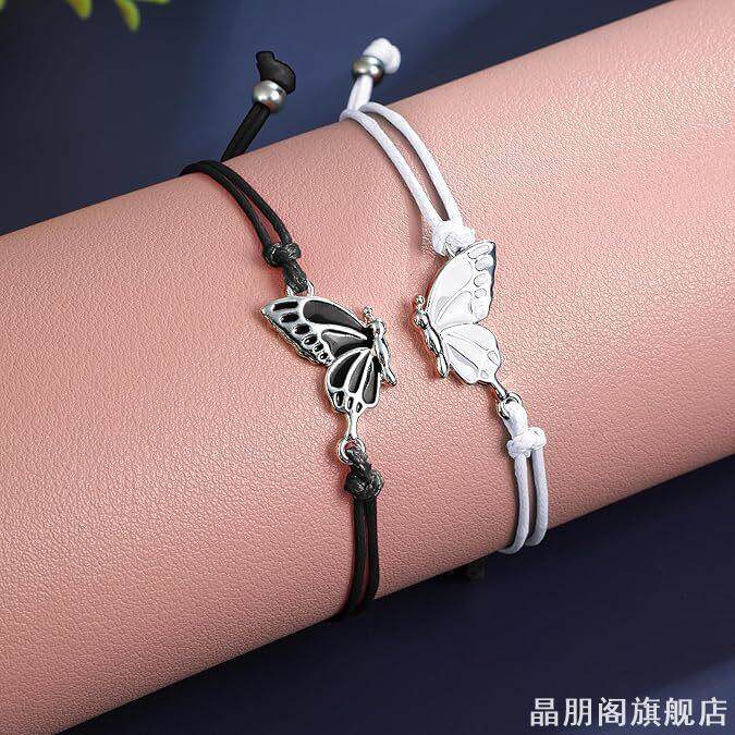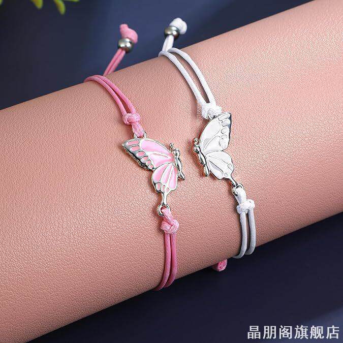 二人款一对可爱蝴蝶拼接闺蜜手链好朋友学生儿童手工编织手绳友谊