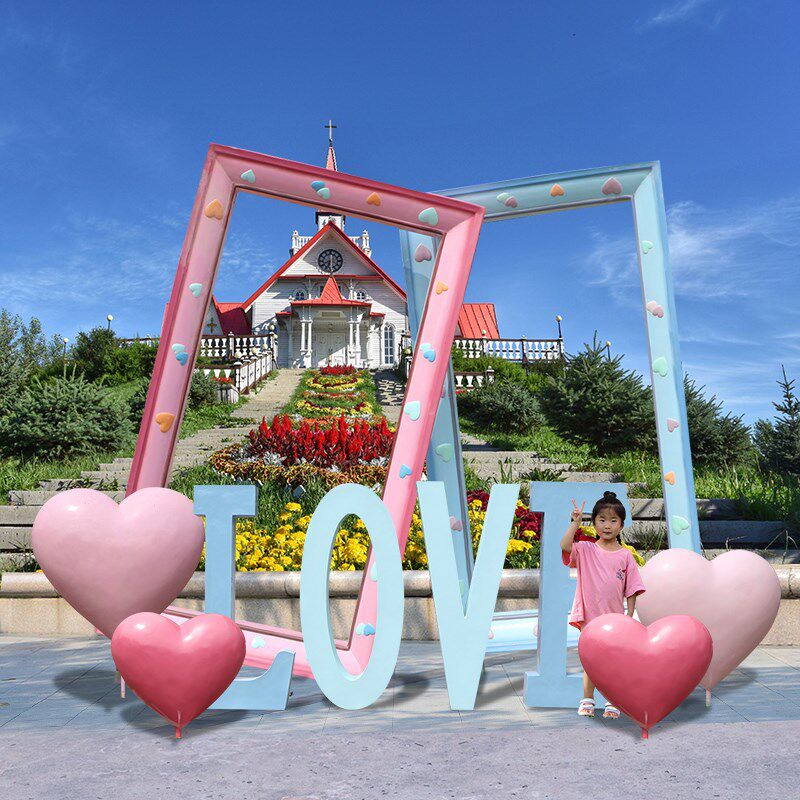 户外网红爱心雕塑景区玻璃钢大型拍照打卡摆件售楼部度假村装饰品