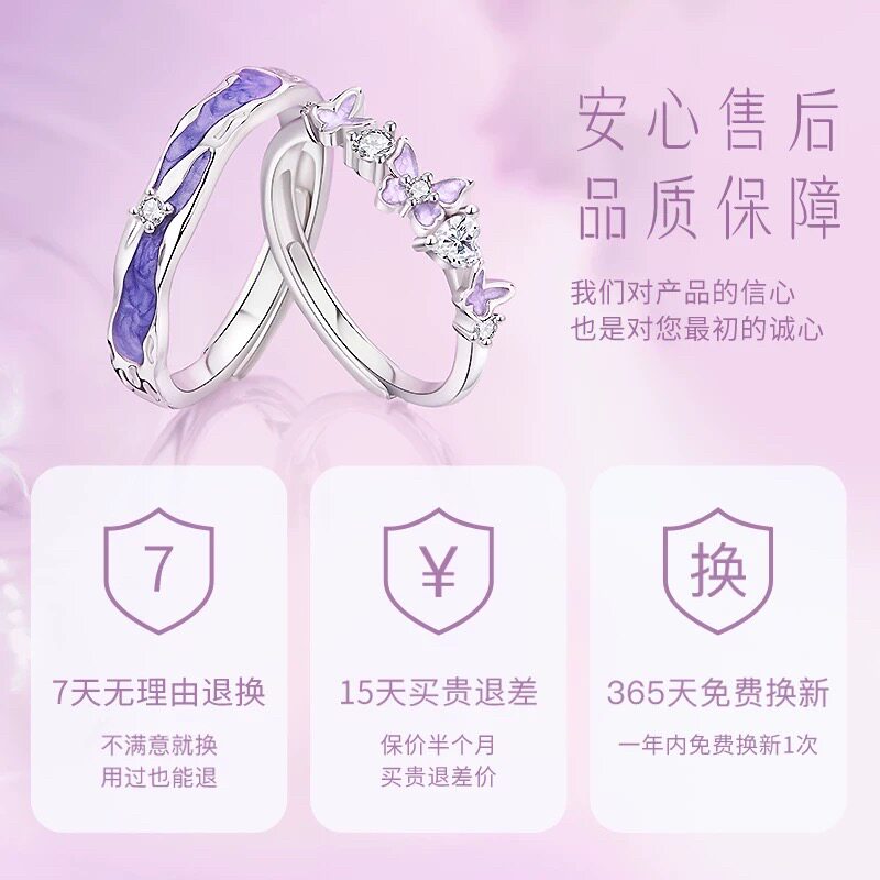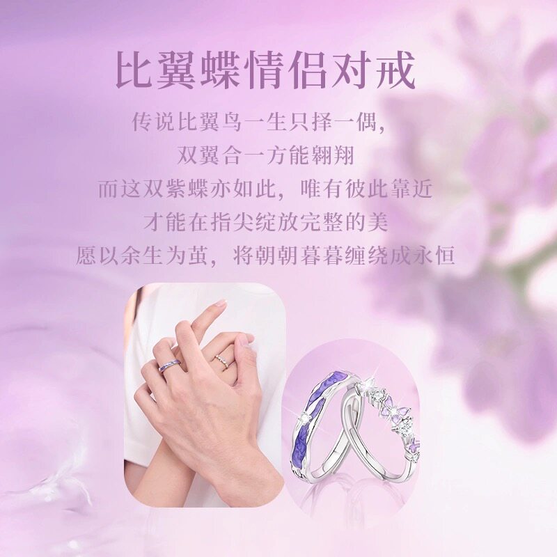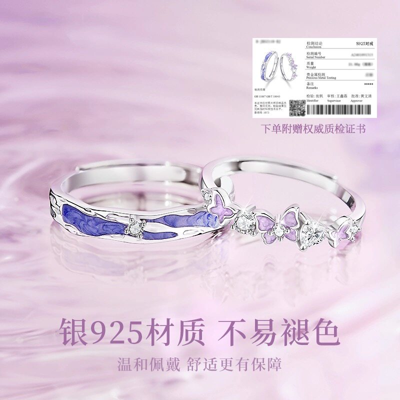珍尚银蝴蝶情侣对戒纯银戒指情侣款生日礼物送男女友1693