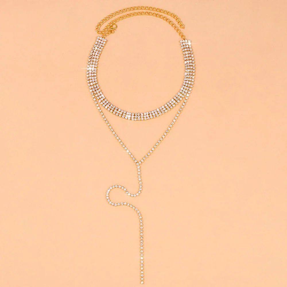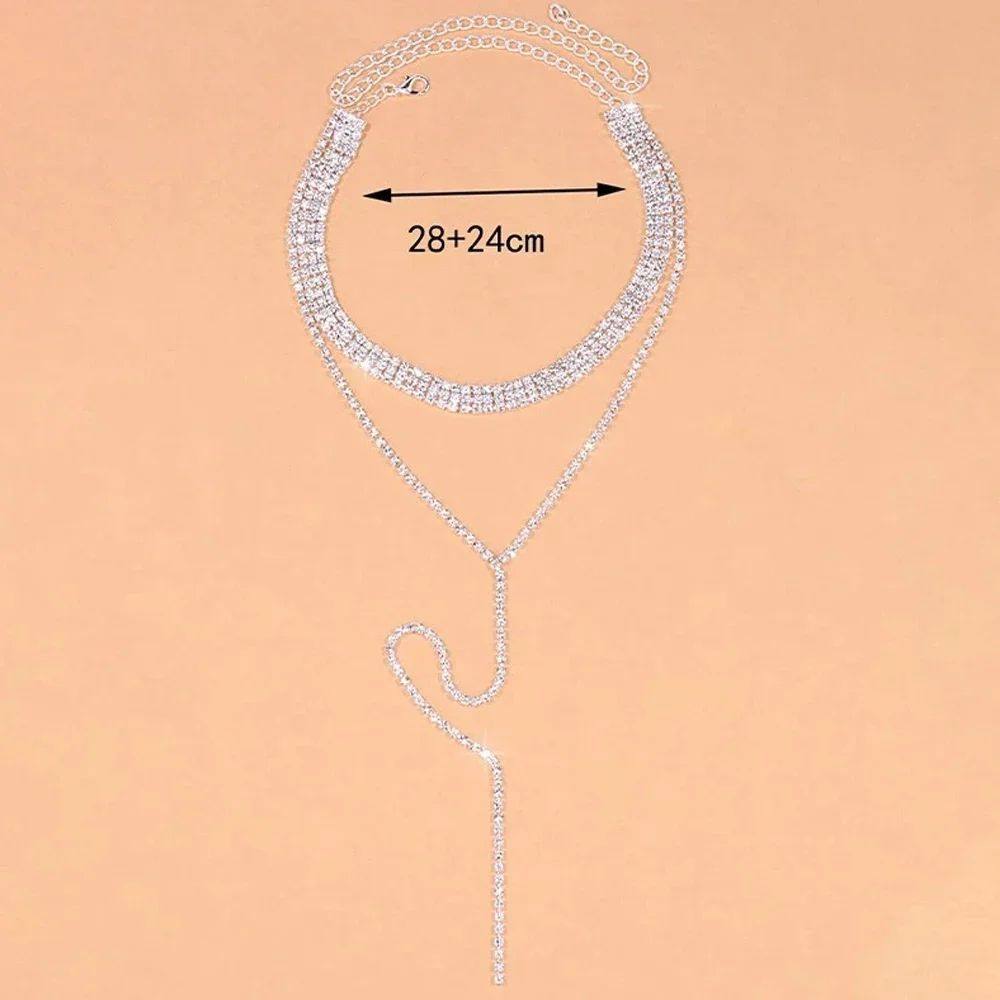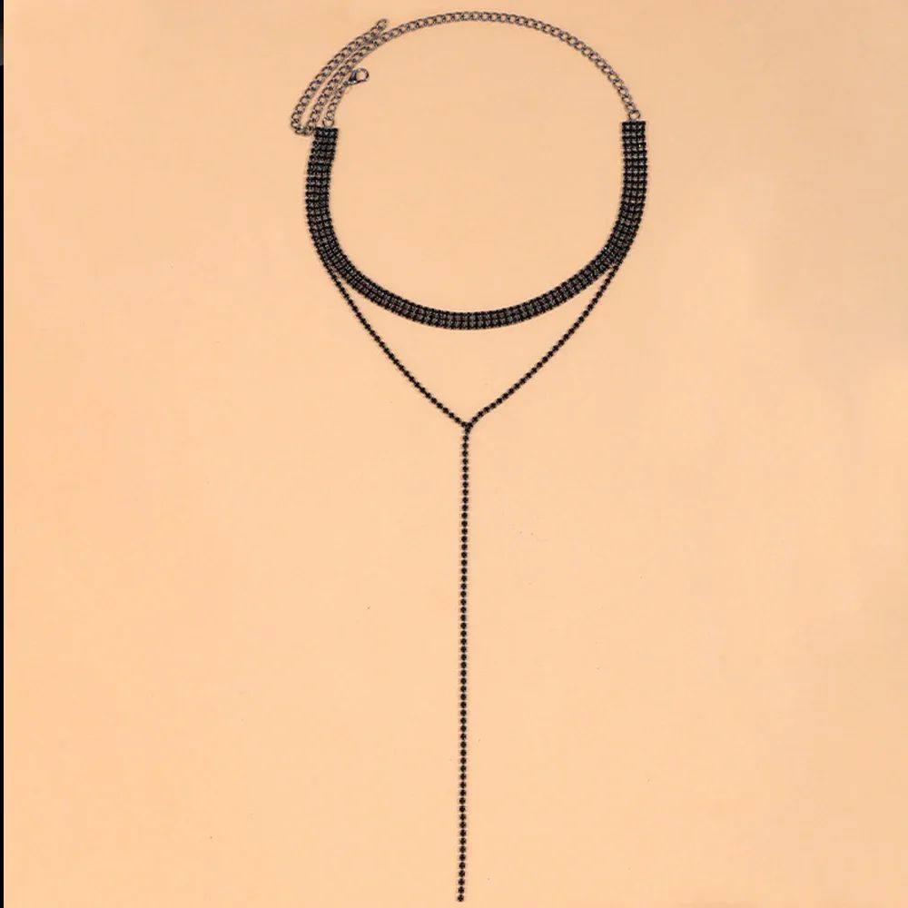 Black Rhinestone Long Tassel Choker Necklace for Women