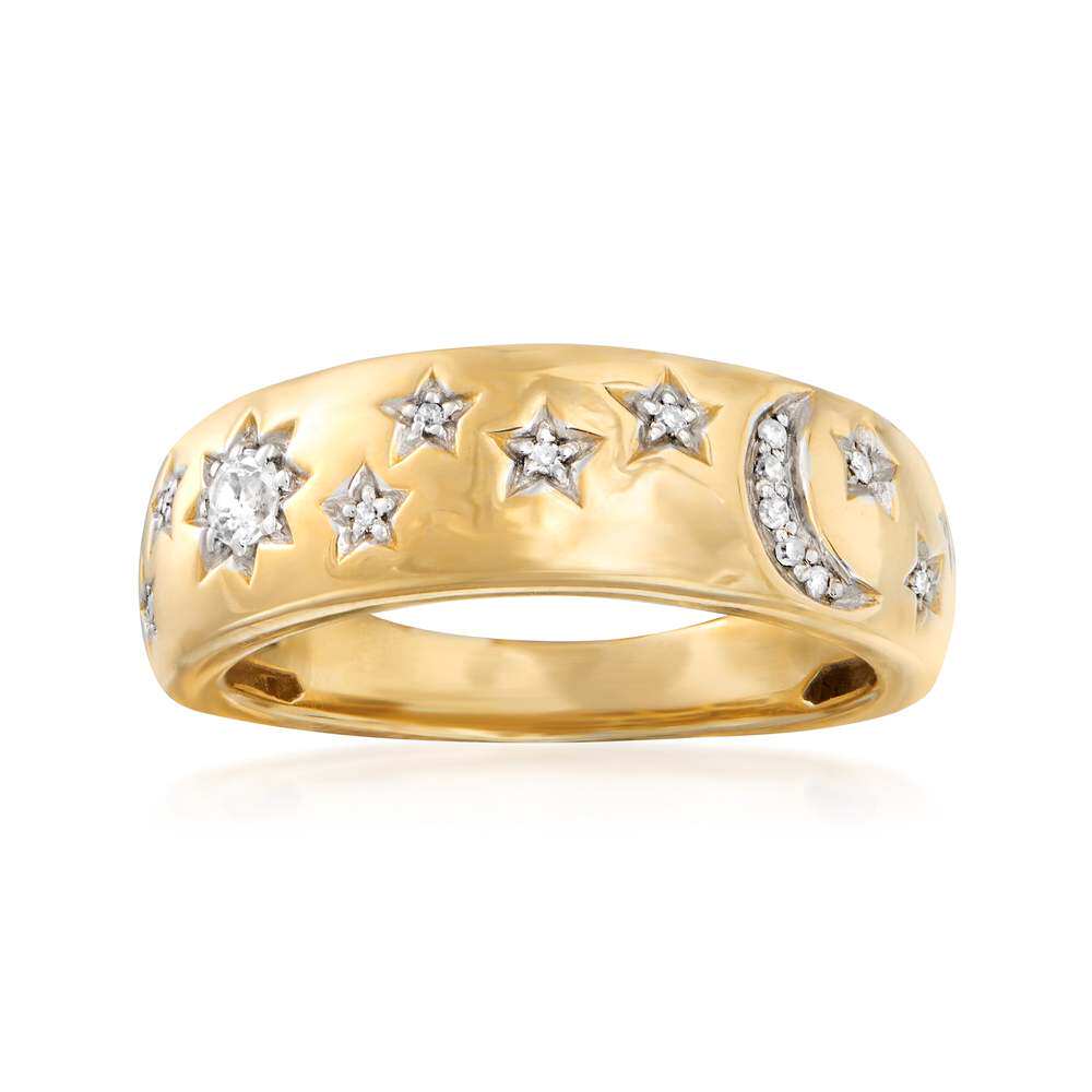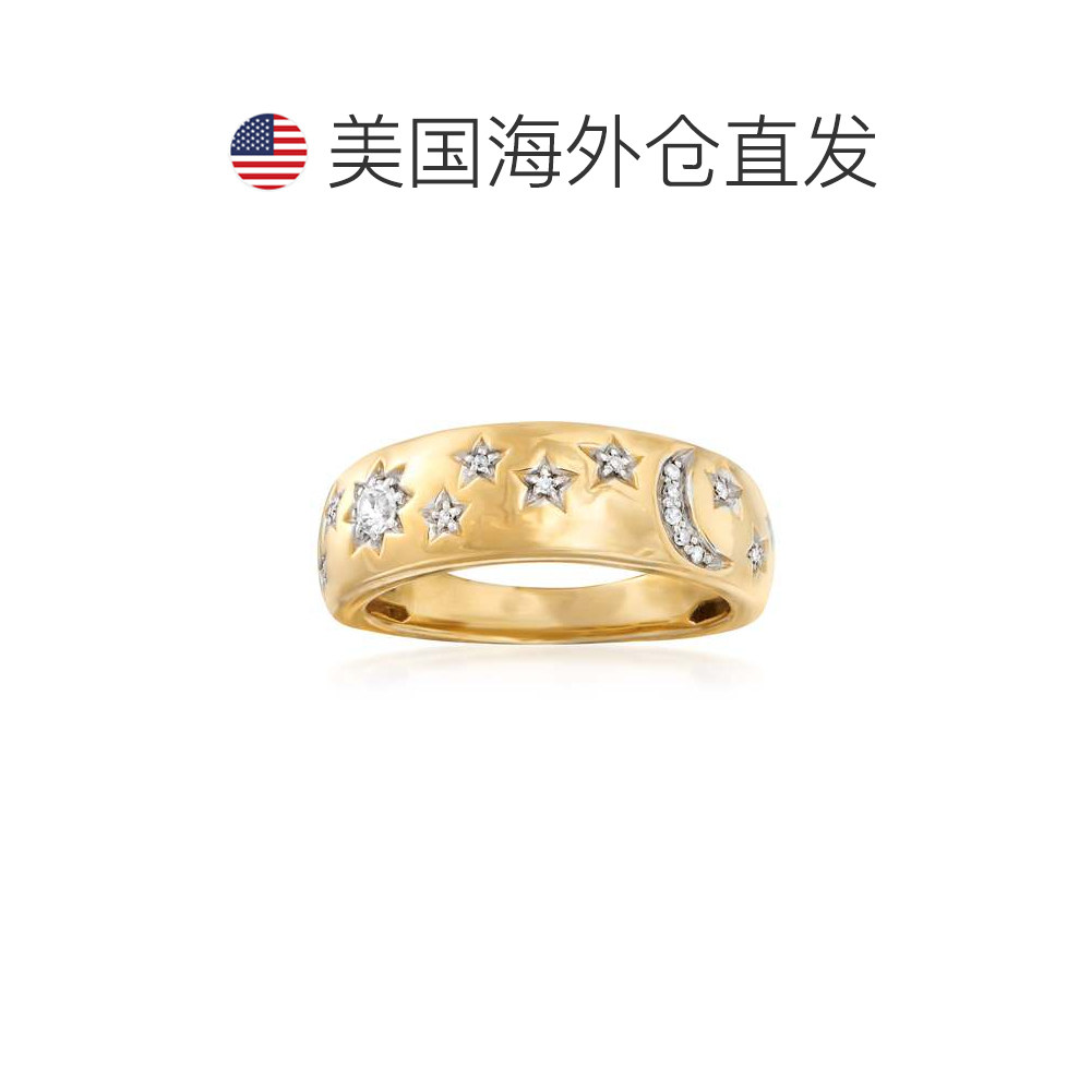自营 Ross-Simons 18kt 纯银钻石月亮和星星戒指 白色 美国奥莱直
