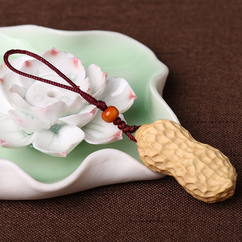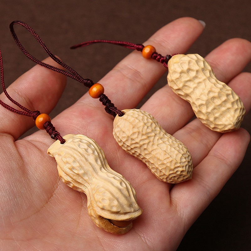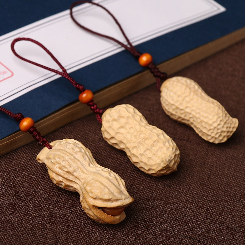 极速黄杨木雕刻花生汽车钥匙扣挂件手机H吊坠手把件结婚早生贵子