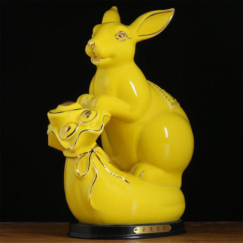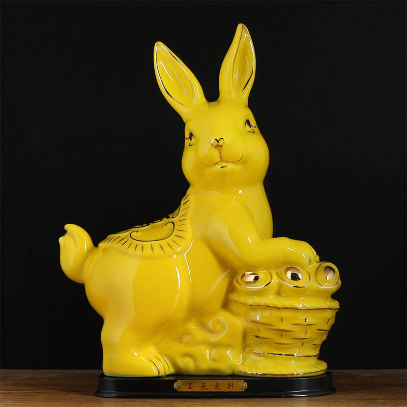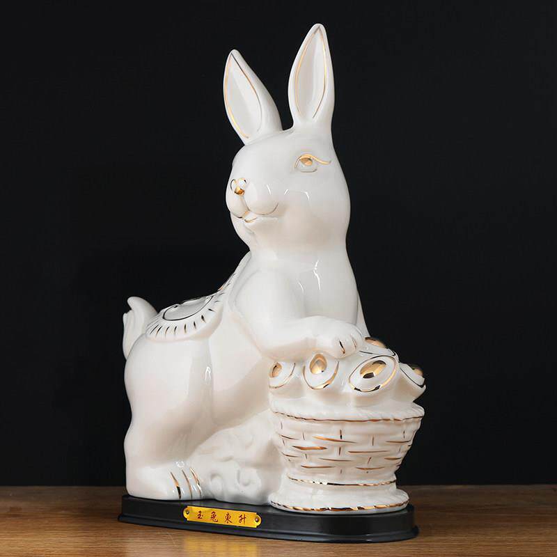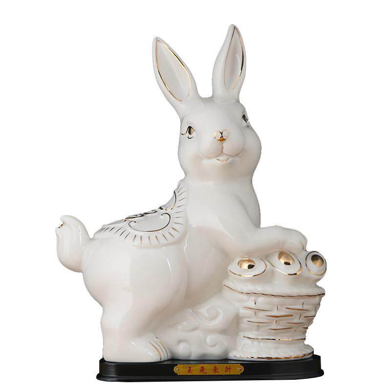 红色陶瓷兔子摆件大号桌面客厅十二生肖兔德化瓷玉兔工艺饰品招财