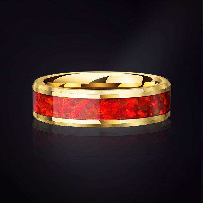 独特新年红色f本命年男士戒指潮高级时尚金色澳宝指环食指男戒子