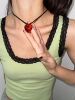 小红书同款y2k透明爱心琉璃吊坠红色粉色麂皮项链小众设计锁骨链