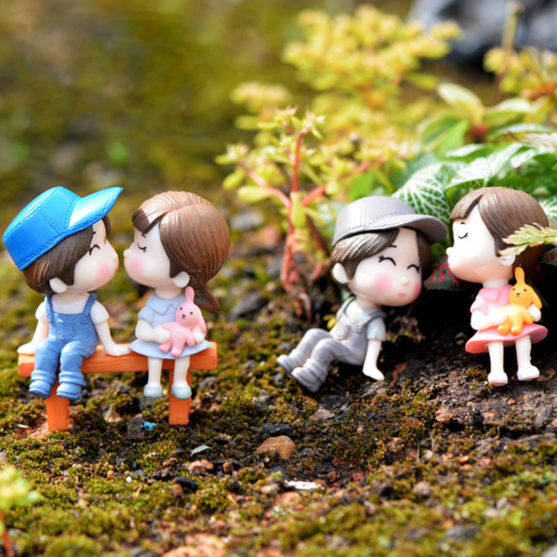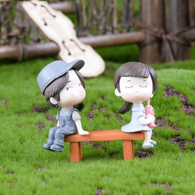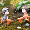 微景观创意工艺品盆栽造景可爱卡通凳子上情侣公仔装饰品摆件一套