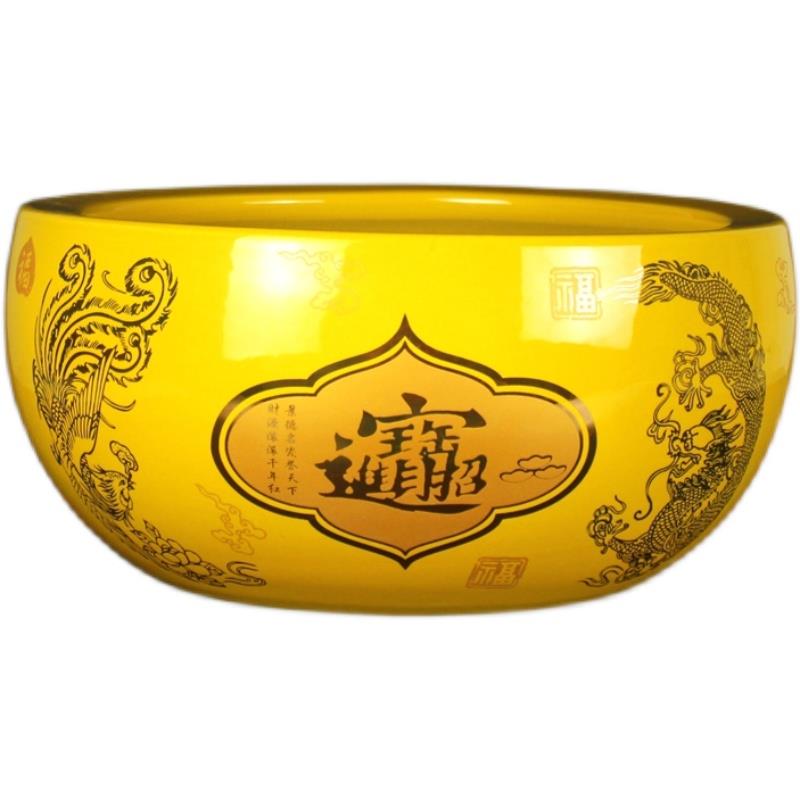 景德镇黄色陶瓷聚宝盆招财聚财鱼缸客厅创意花瓶摆件瓷器水培花盆