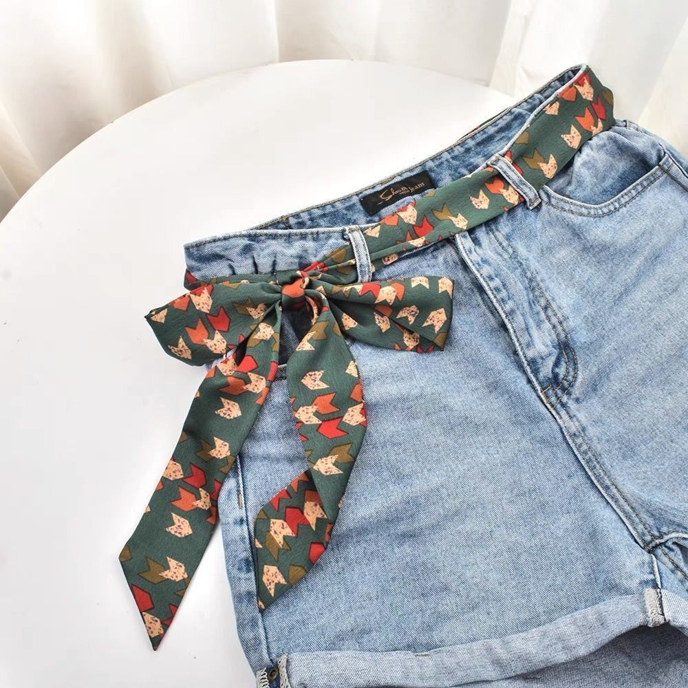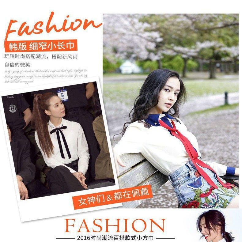 绿色柔软绸缎细窄绑脖子丝巾项链长款女衬衫配饰领带蝴蝶结毛衣链