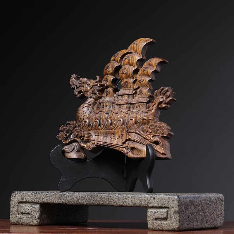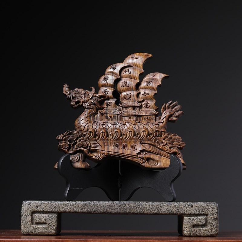 沉香木雕一帆风顺龙舟摆件木质雕刻工艺品展示柜书桌装饰品