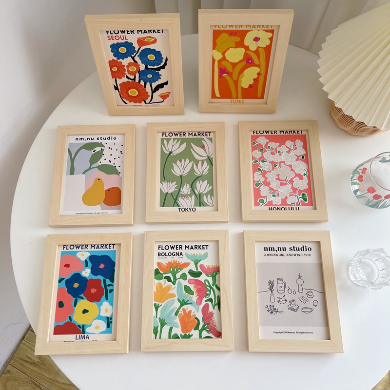 韩系小众ins桌面花朵插画相框摆件摆台民宿餐厅卧室装饰品挂画7寸