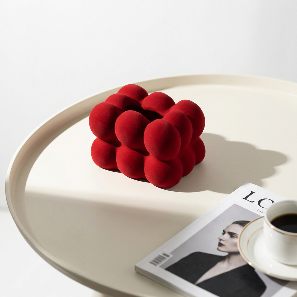 新中式桌面纸巾盒红色植绒客厅家用茶几抽纸盒实用装饰书房办公室
