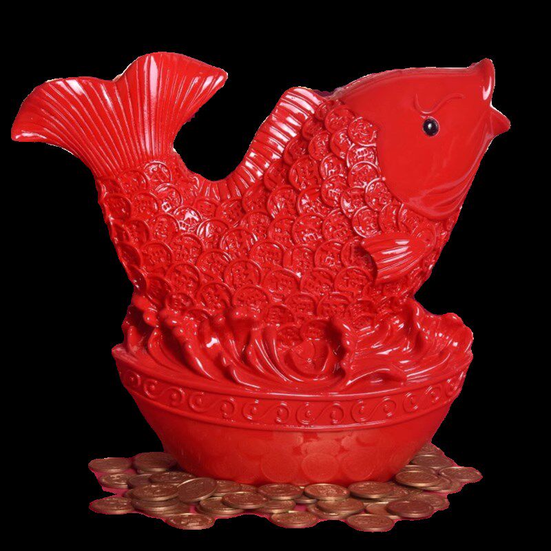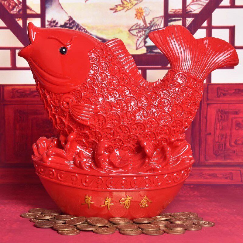年年有鱼存钱罐红色鲤鱼储蓄罐可存可取新房乔迁礼品新年礼物摆件