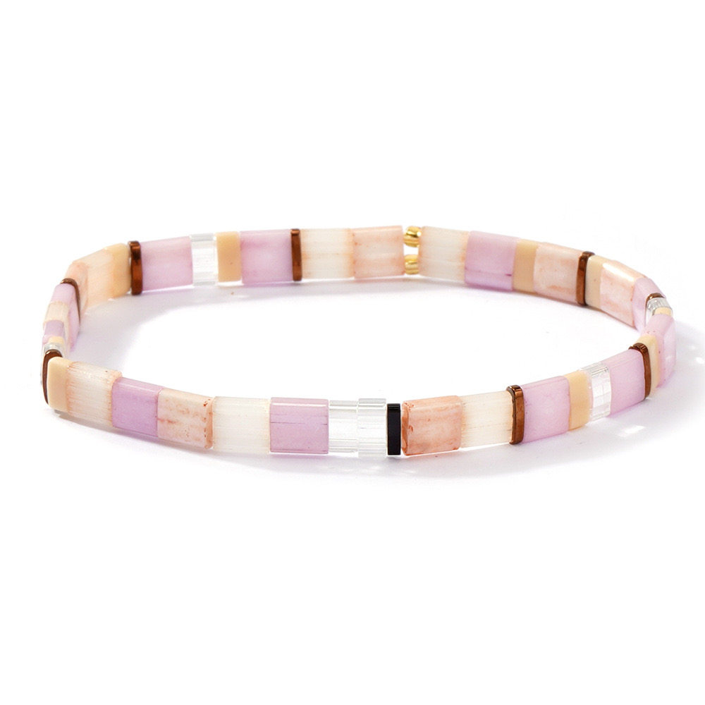 MLGM波西米亚民族风粉紫色系手链Tila珠弹力线串珠手饰叠戴套装