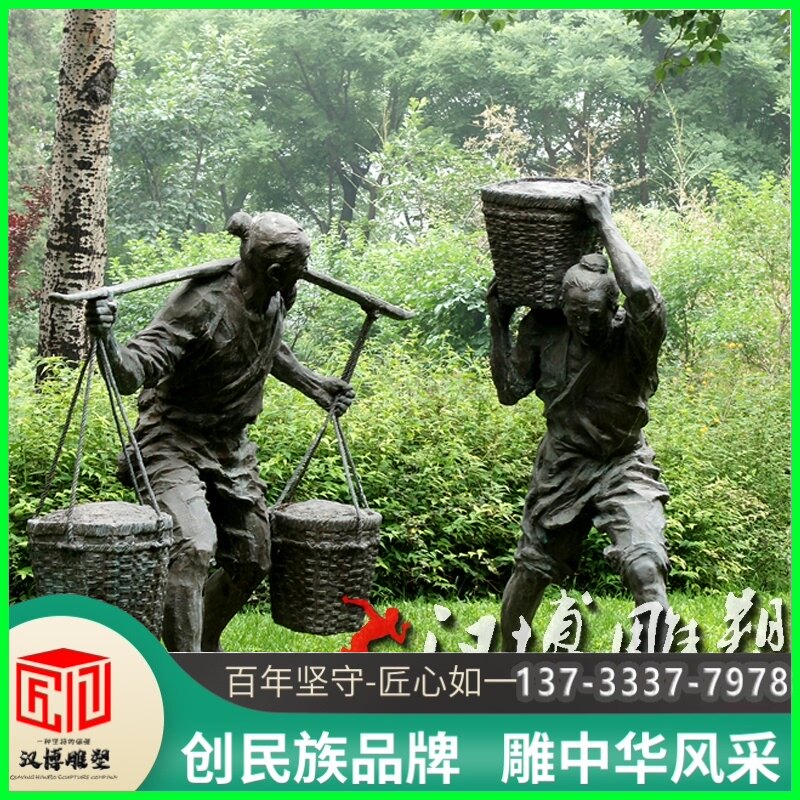 玻璃钢仿铜人物雕塑农民搬运农作物进仓库雕塑景观铸铜人物定制做