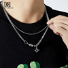 王嘉尔同款黑色四芒星项链男双层叠戴嘻哈潮流毛衣链高级感锁骨链