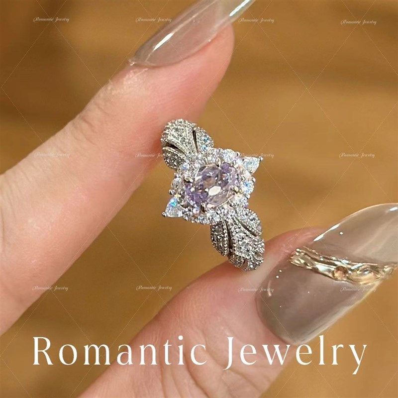 仿超闪淡紫色锆石戒指女小众设计轻奢高级感精致气质开口戒戒指环