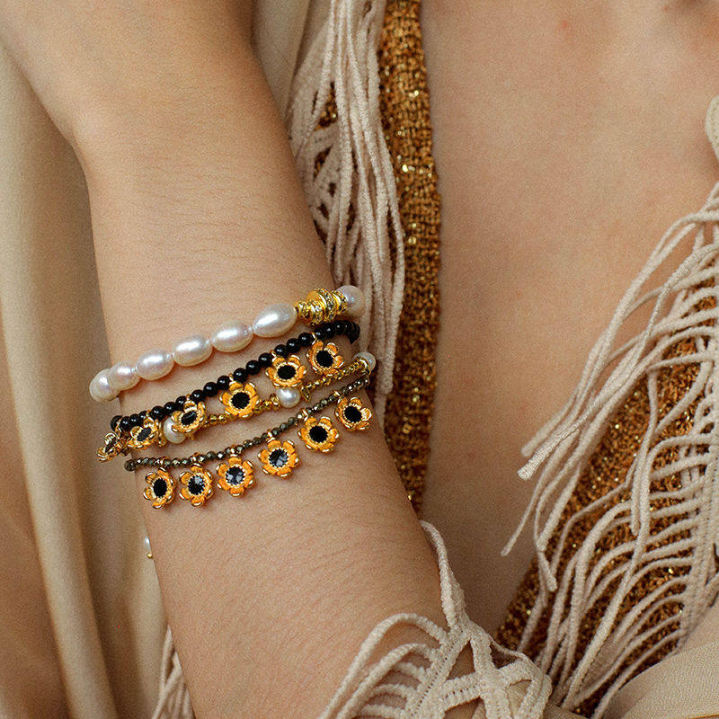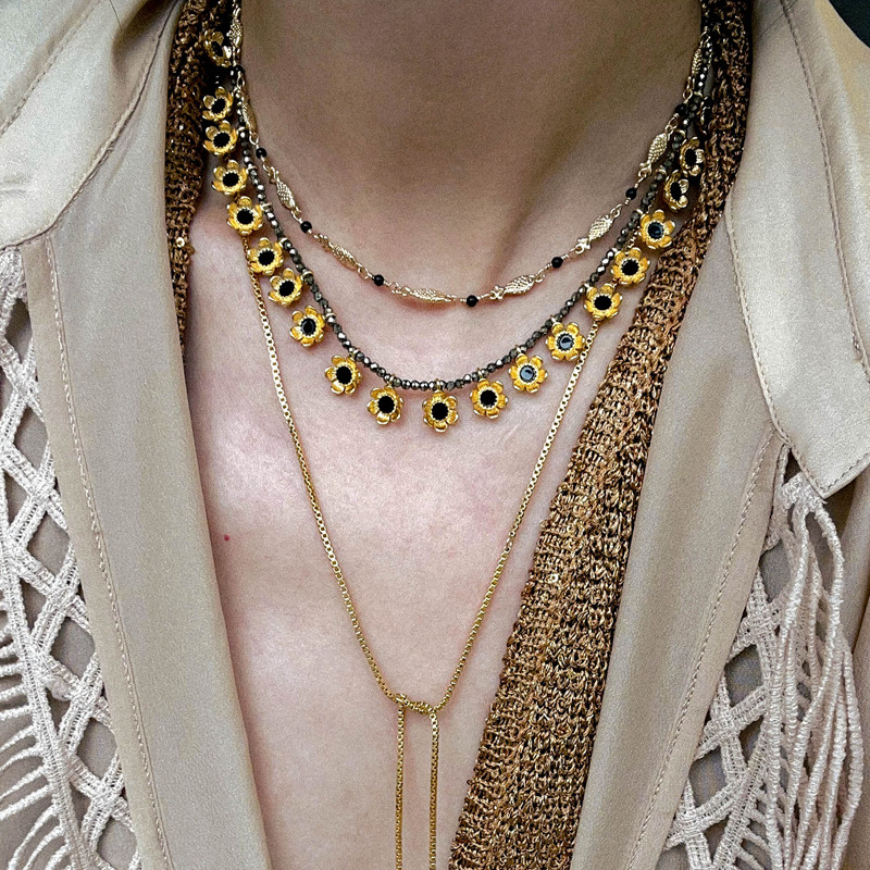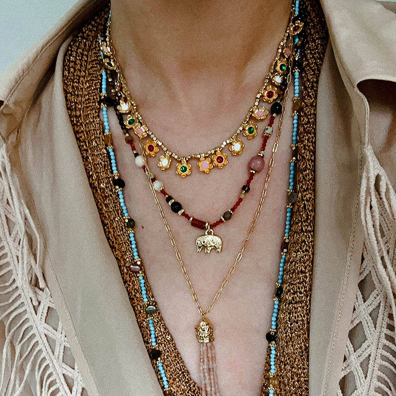 TU家复古法式彩色珐琅花朵串珠项链手链小众轻奢高级感叠戴颈链女