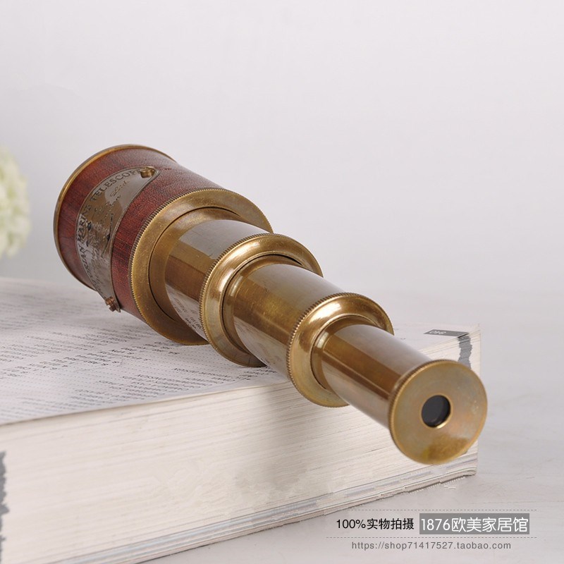 印度进口纯铜牛皮单筒可伸缩复古望远镜L办公室样板间装饰品摆件