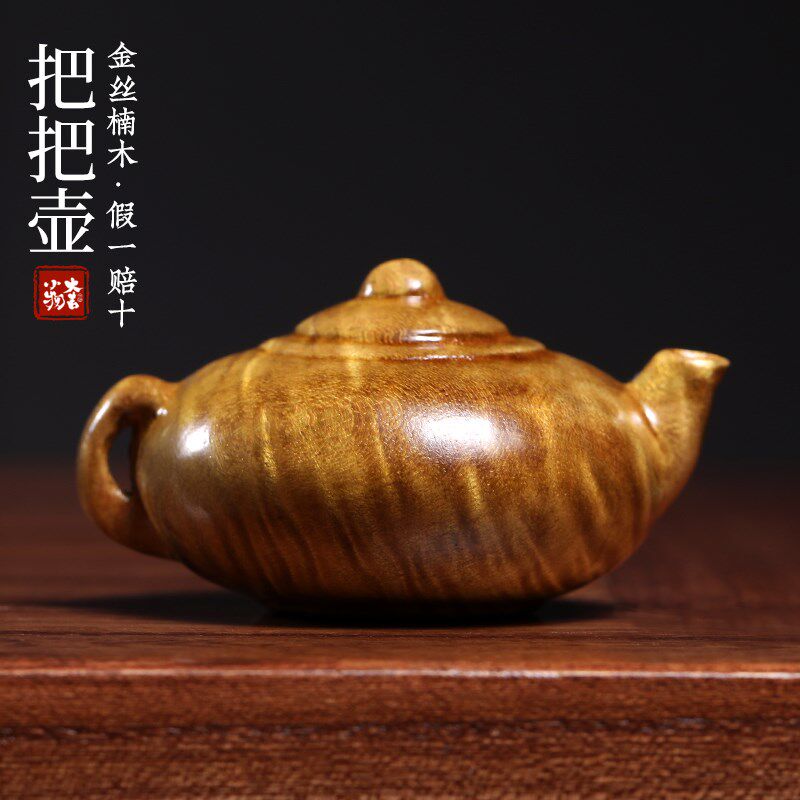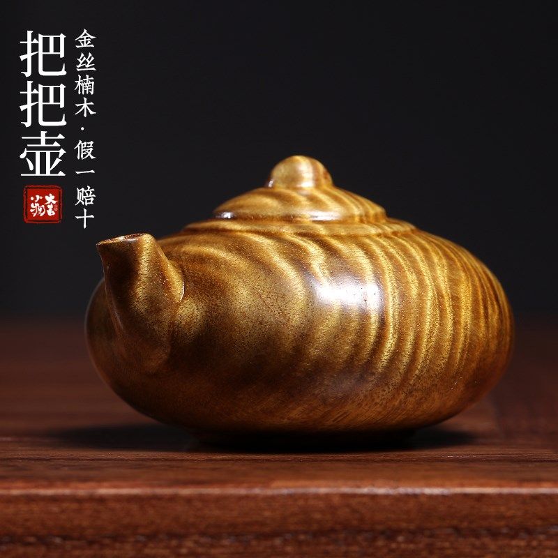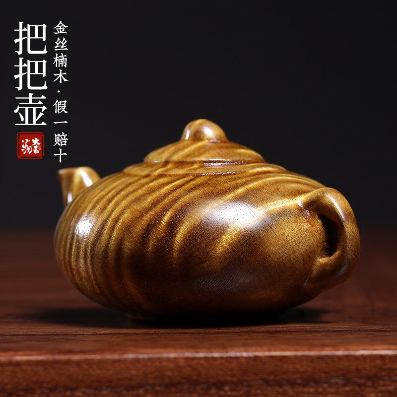天然金丝楠水波纹把把壶手把件甄选满水波纹茶宠茶台装饰茶壶摆件