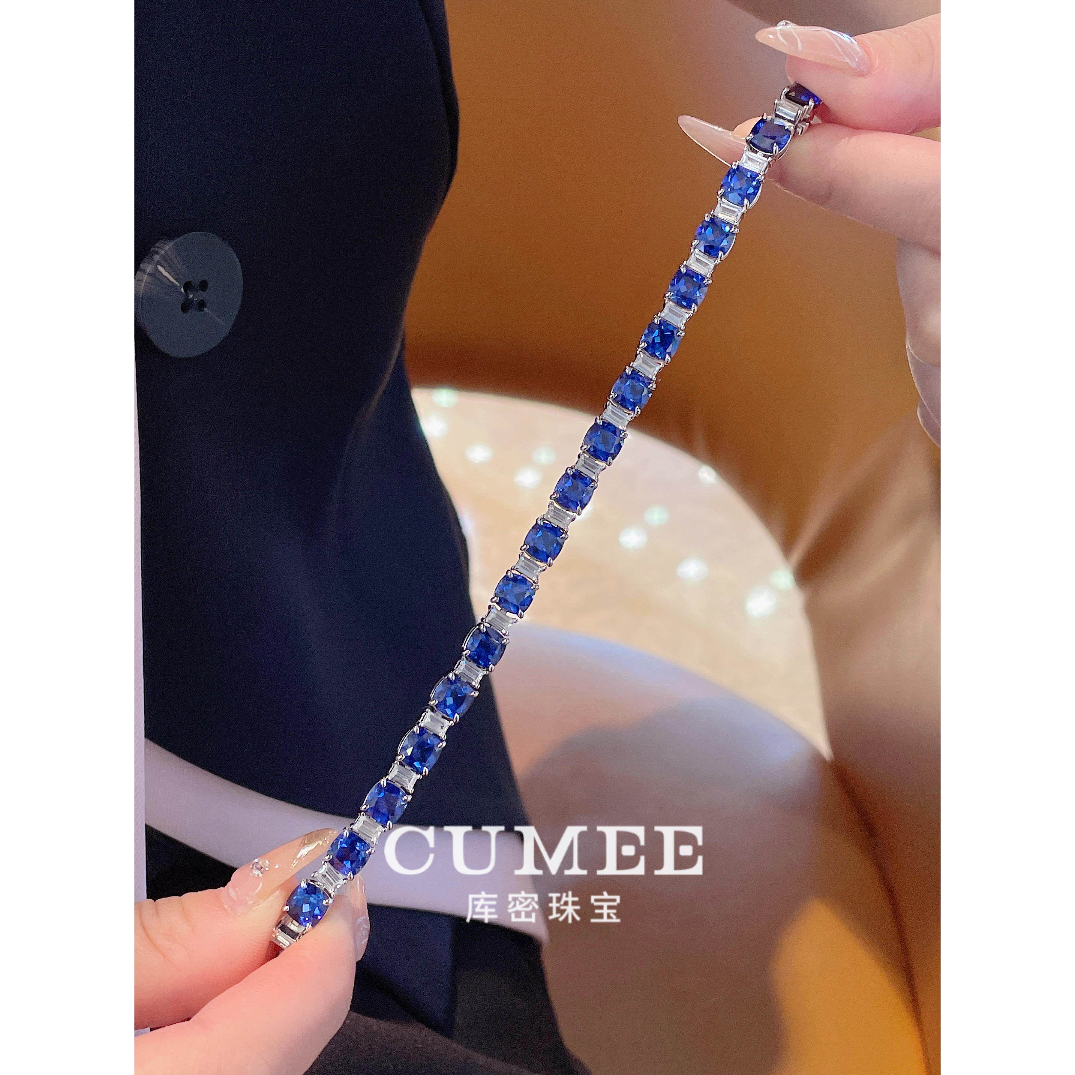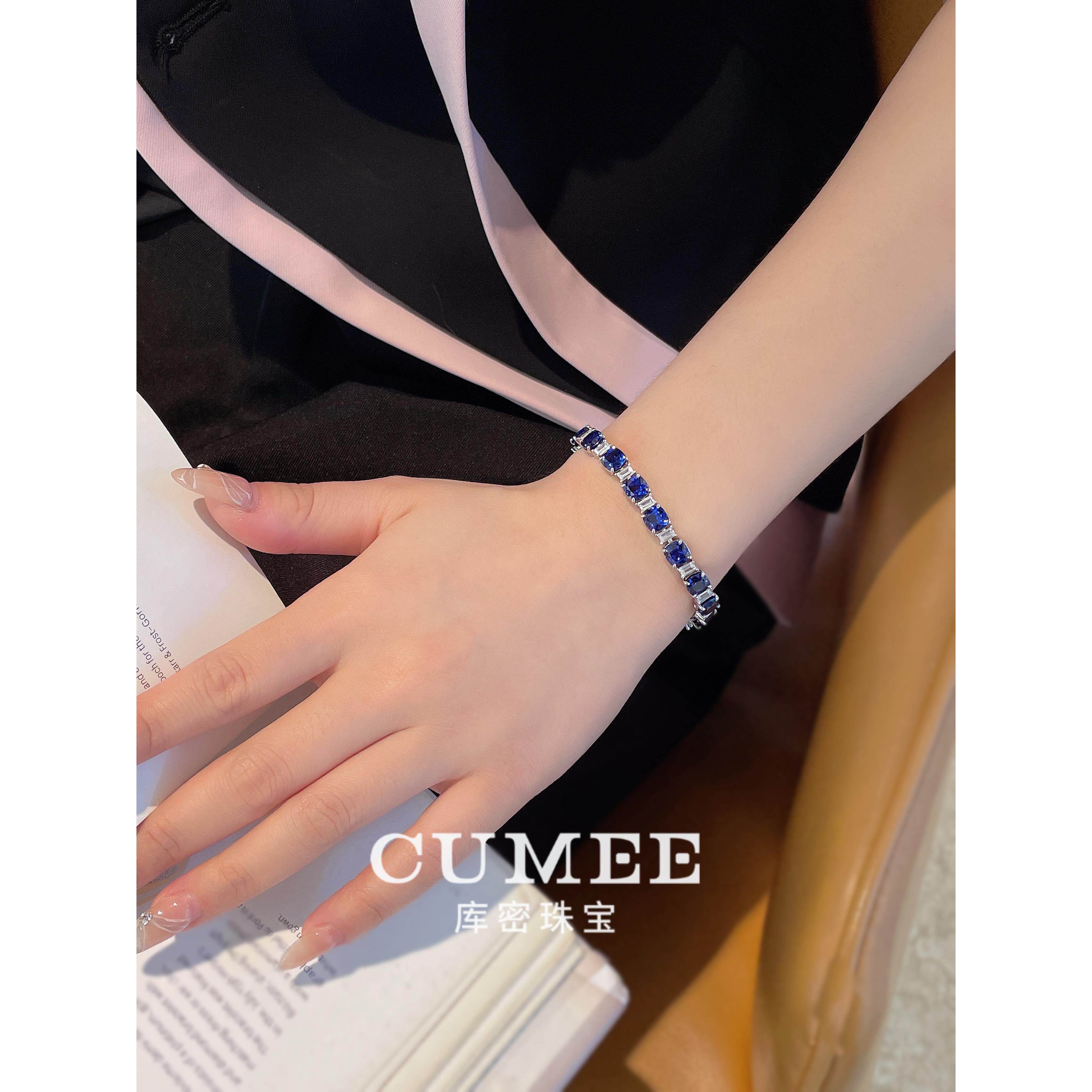 CUMEE 通勤时尚潮流手链 简约风培育合成皇家蓝色手链.银镀金